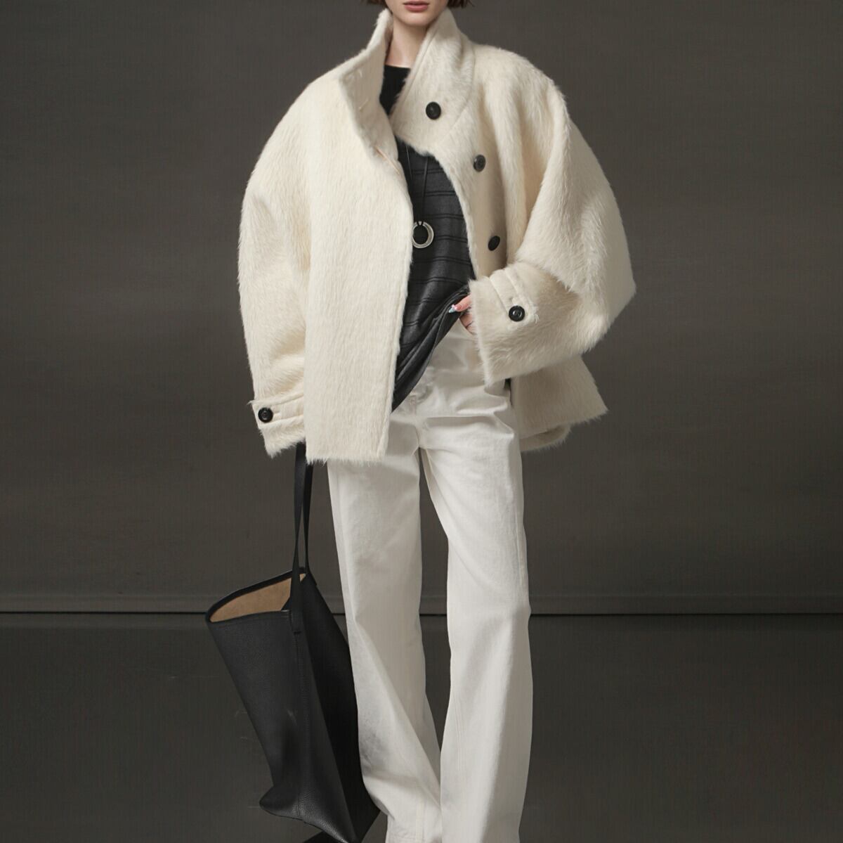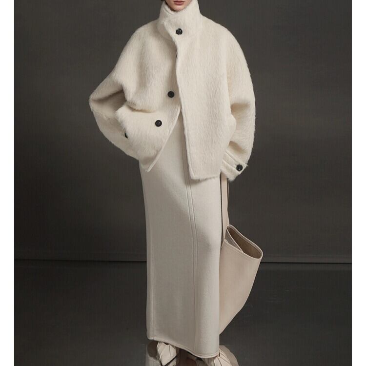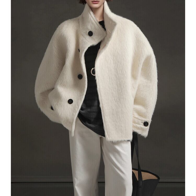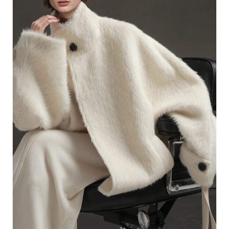 スタンドカラー アルパカ ハーフコート H10552