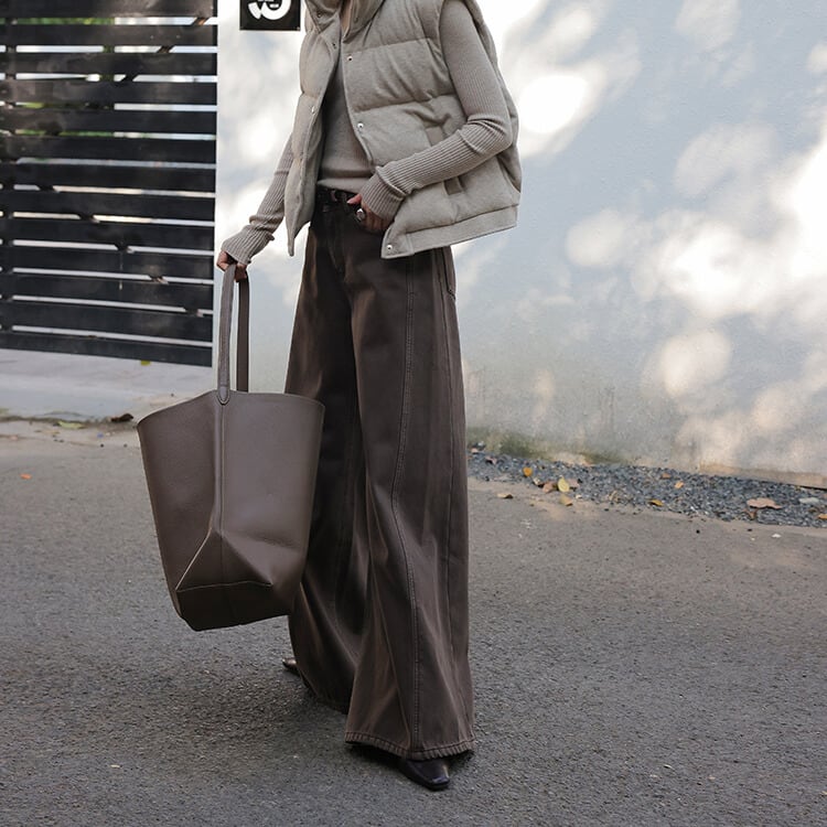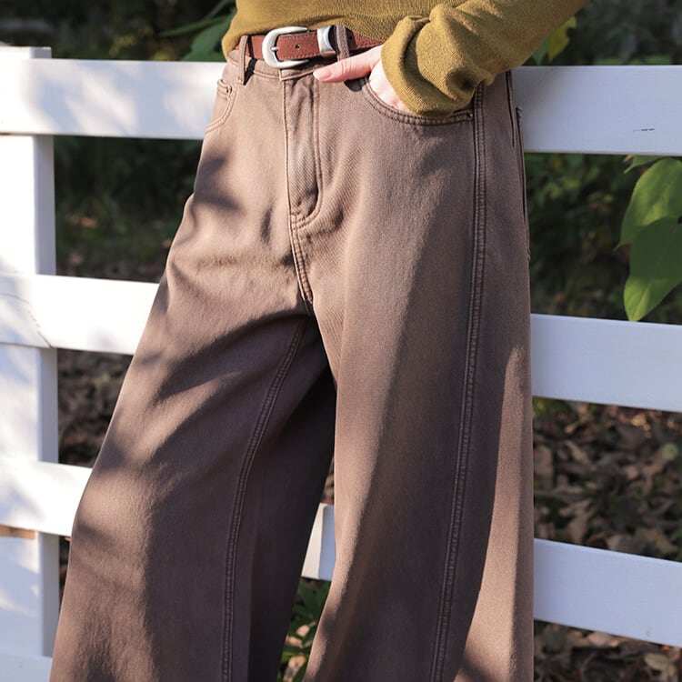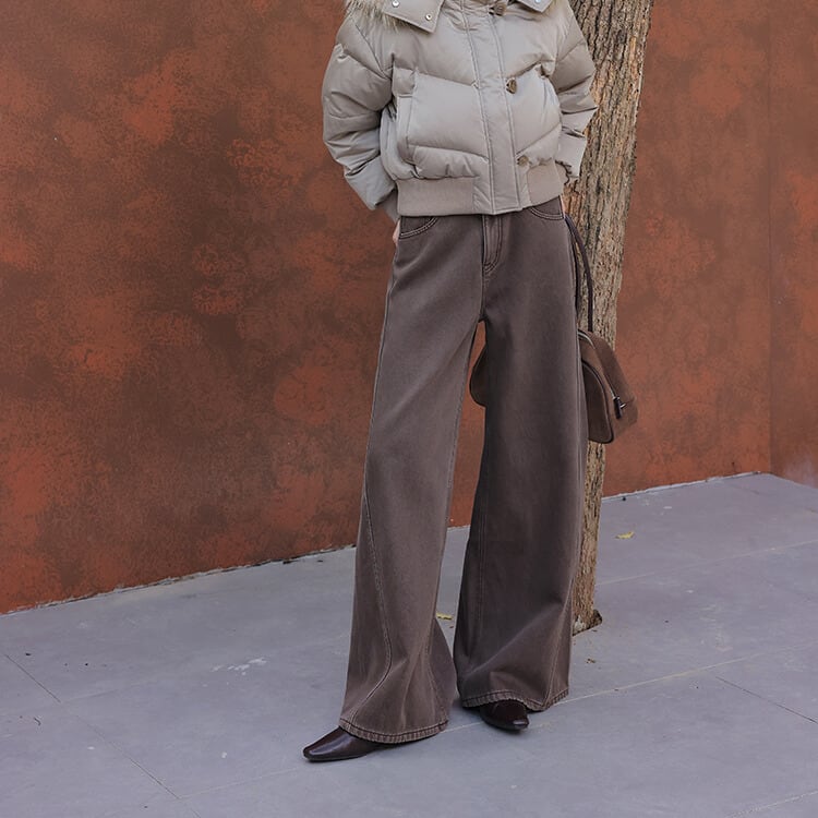 ワイドストレートのデザインが、リラックス感のあるシルエットを演出します。