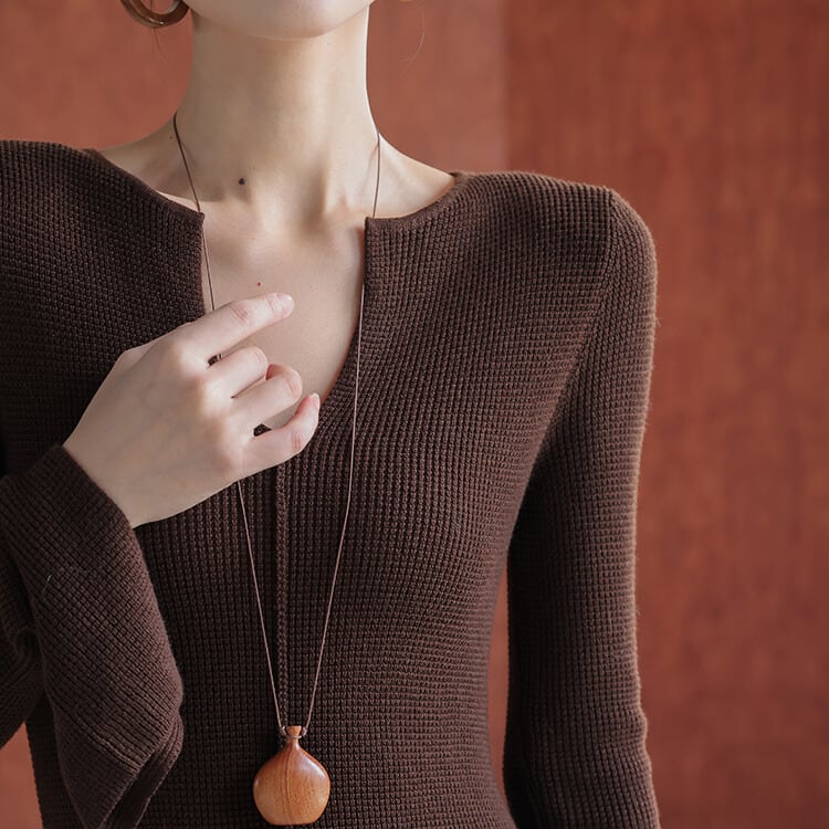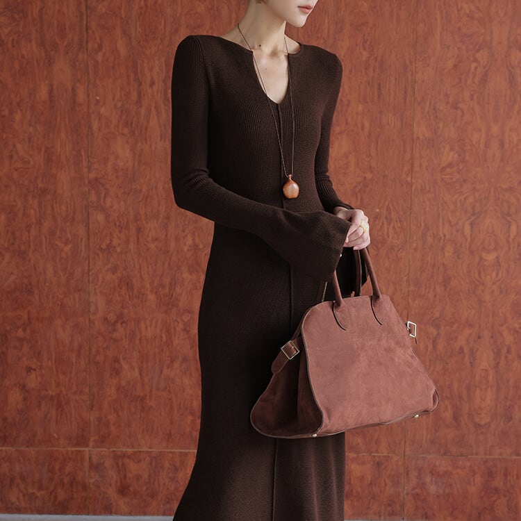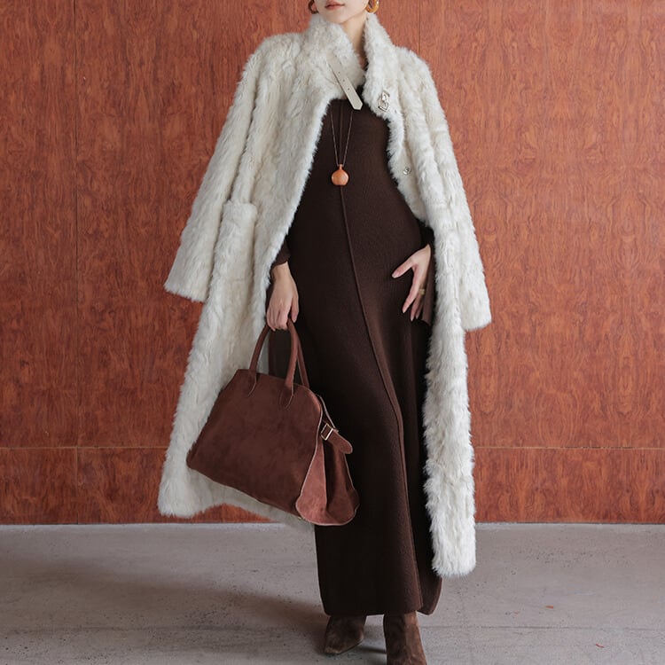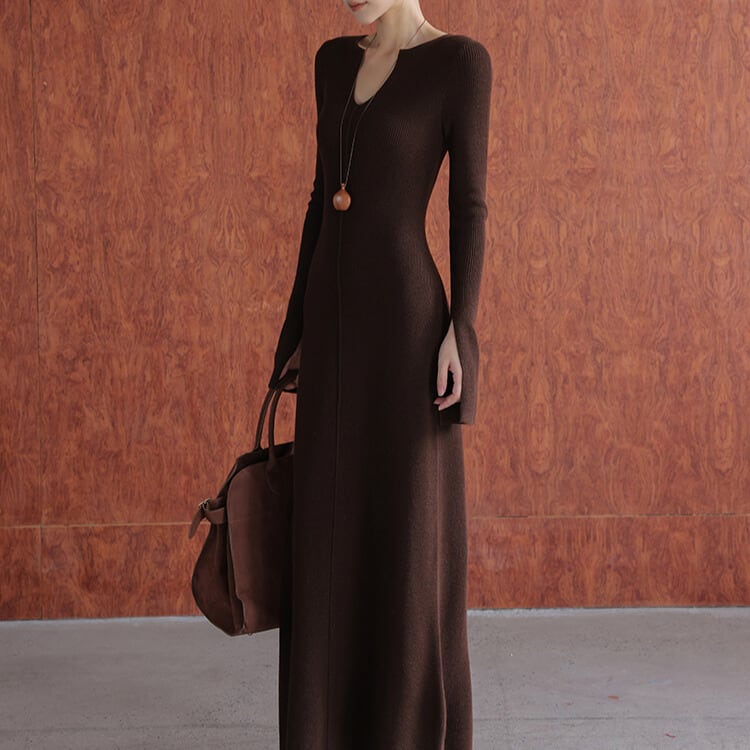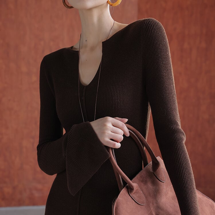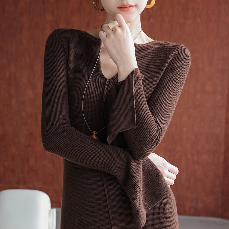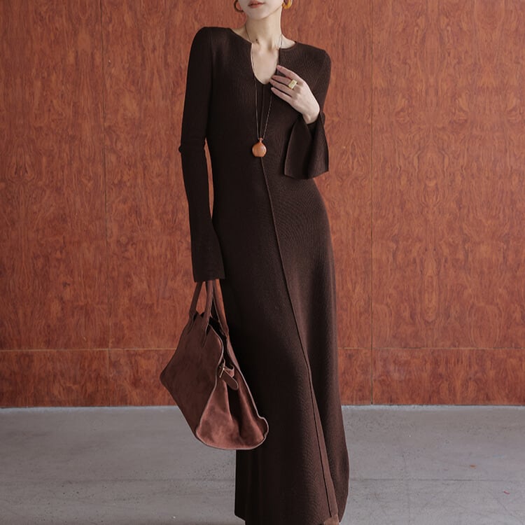 シンプルなデザインの中に、さりげない個性が光るニットワンピース。