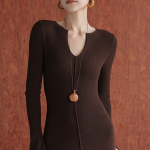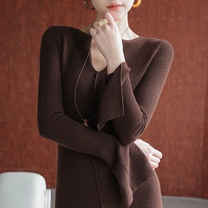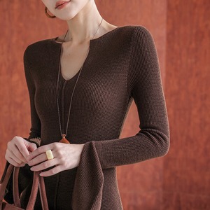 スリット入りロングスリーブ ニットワンピース 1col H10610