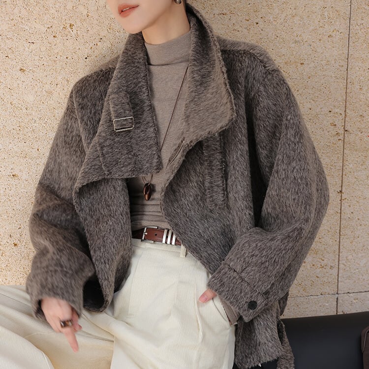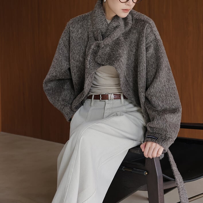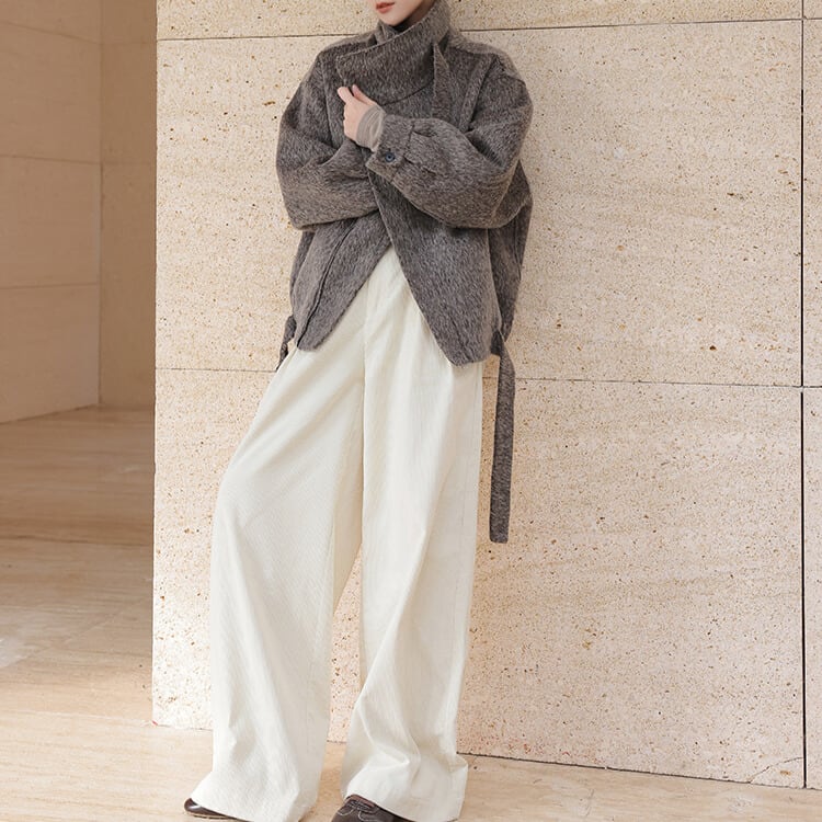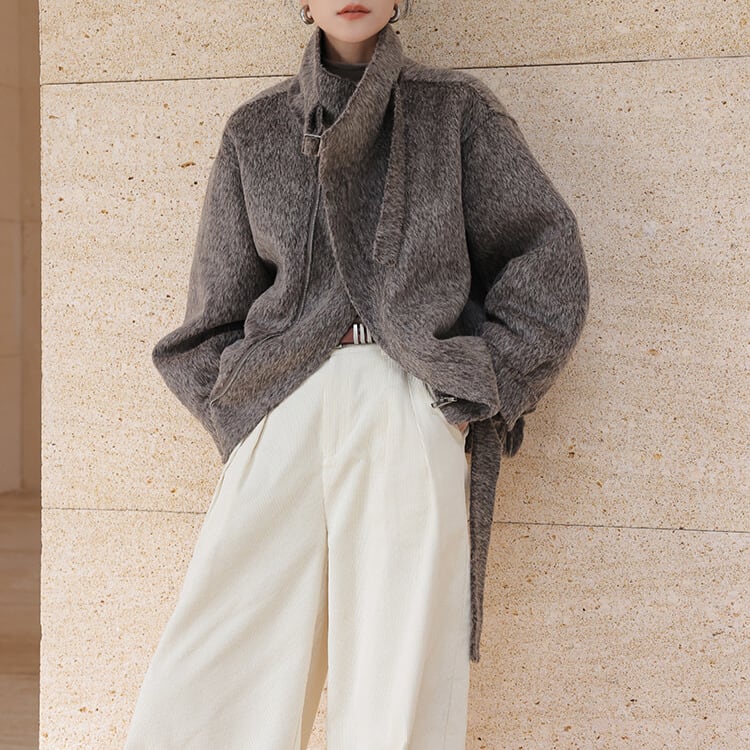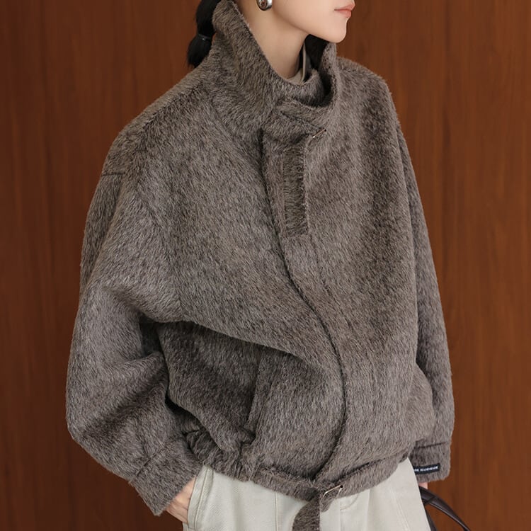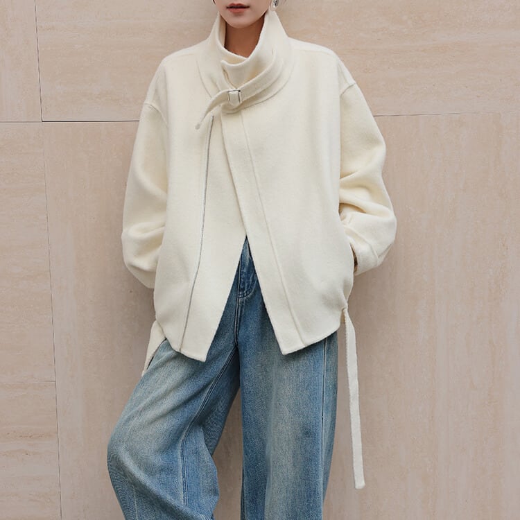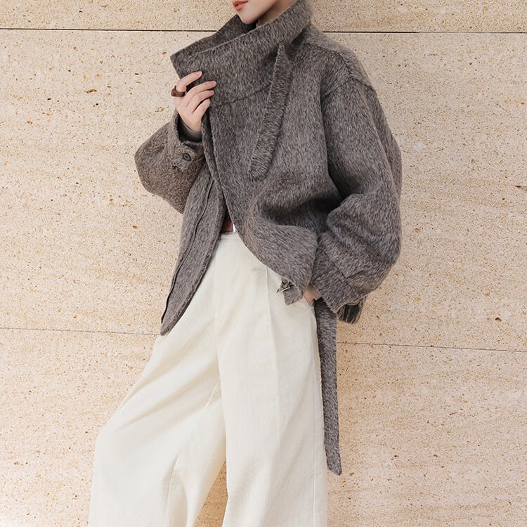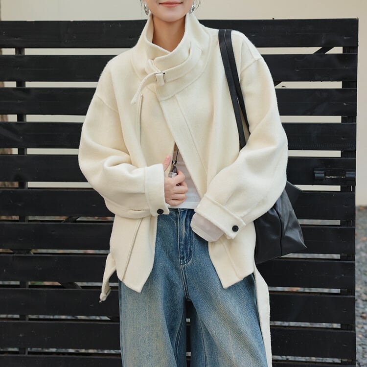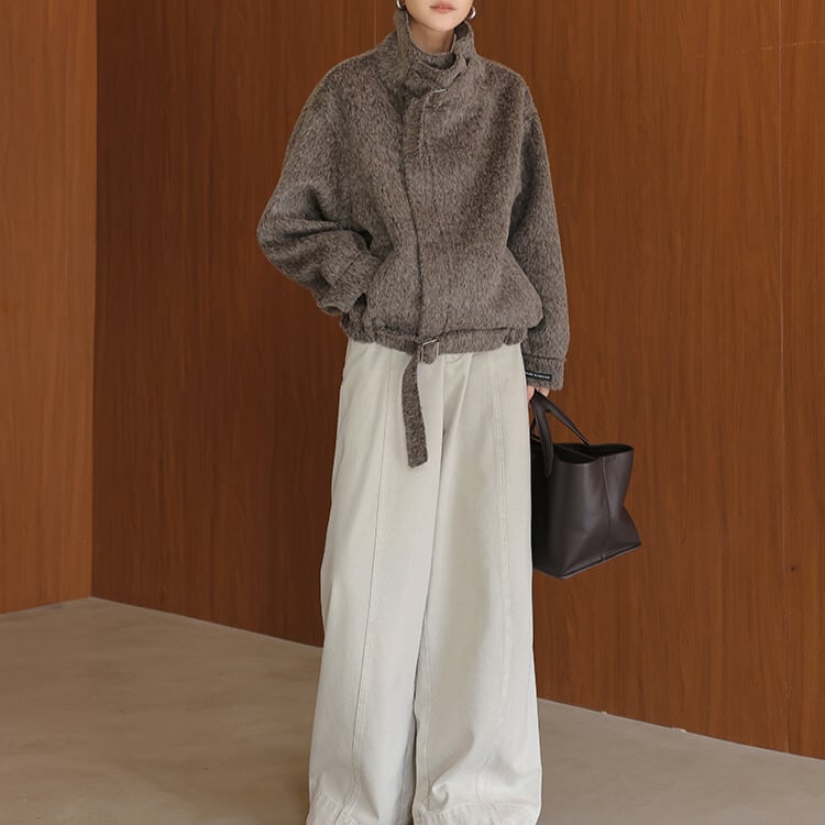 ベルト付き スタンドカラー ジャケット 2col H10563