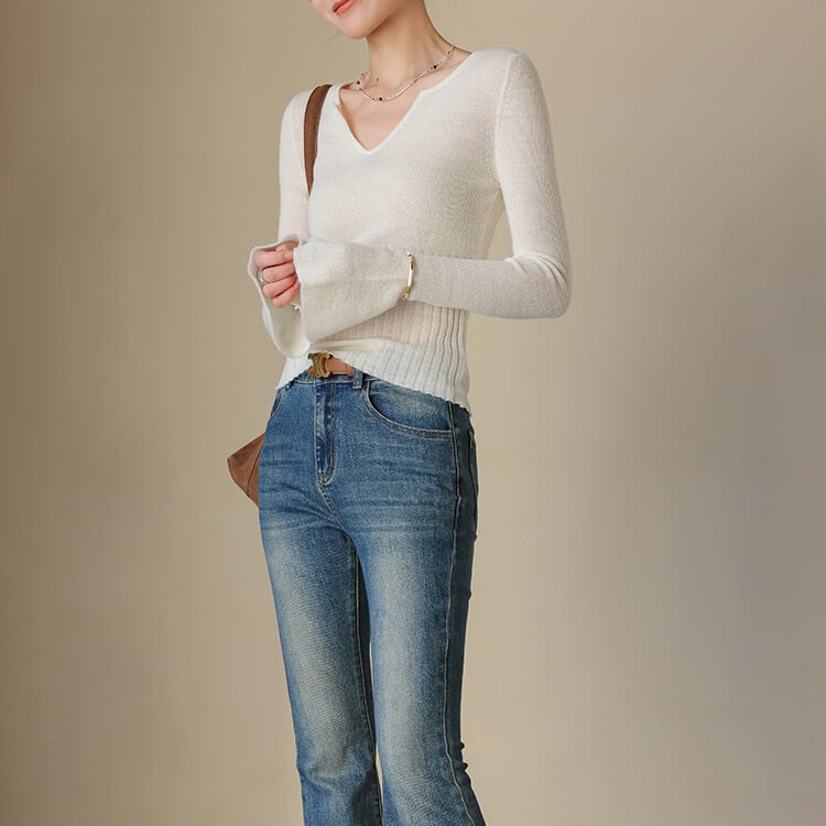 フレアスリーブ Vネック ニットトップス 1col H11083