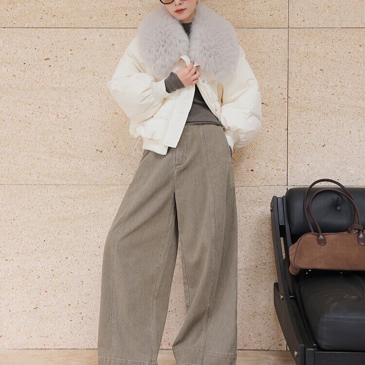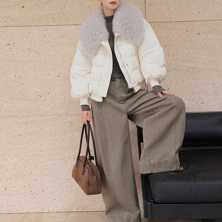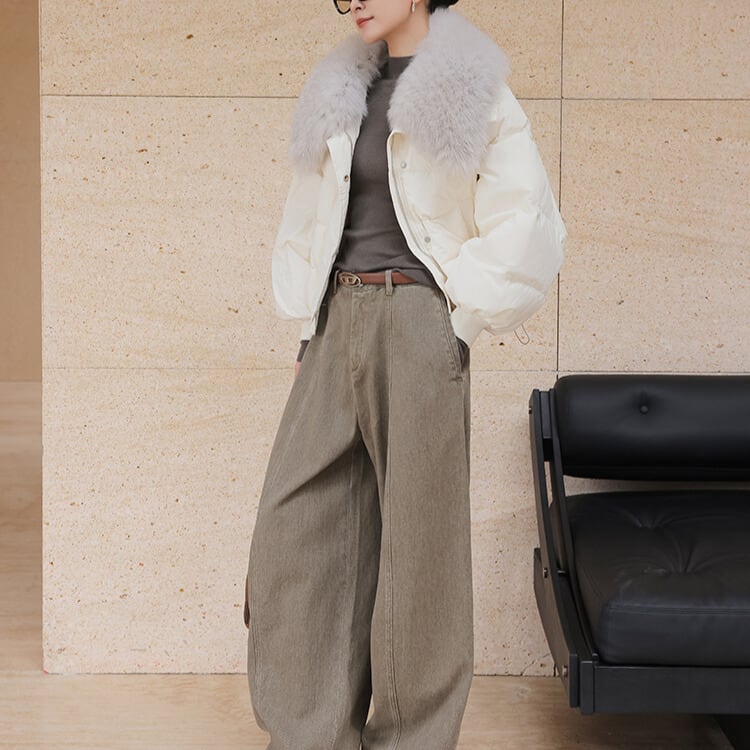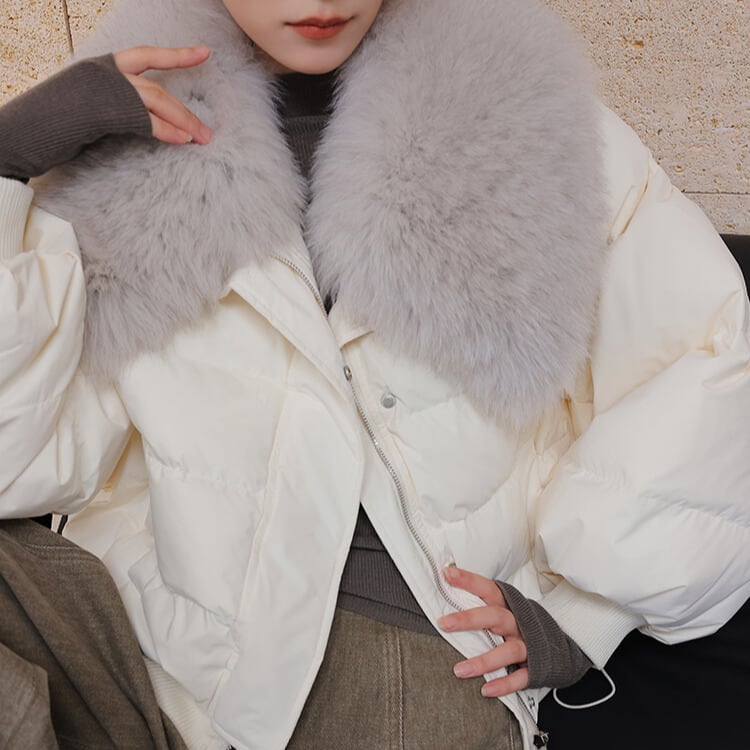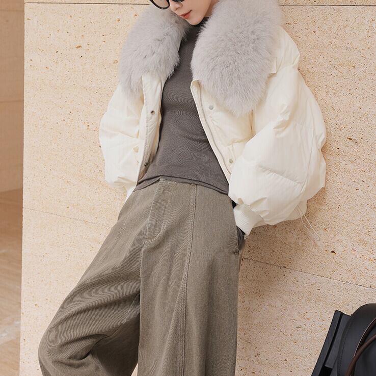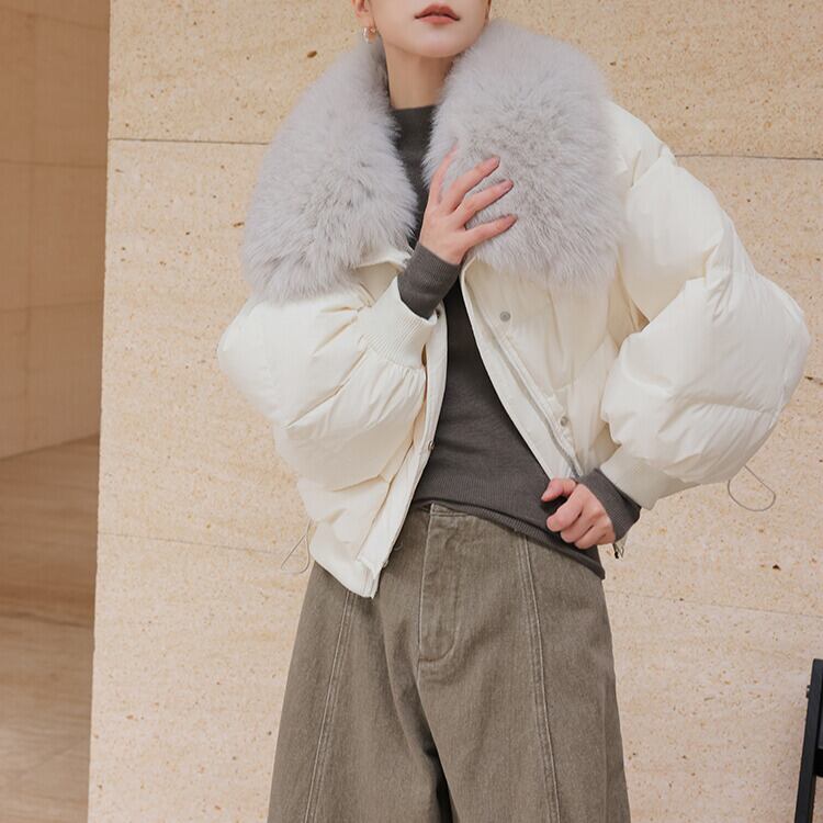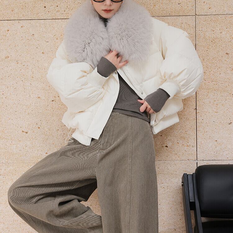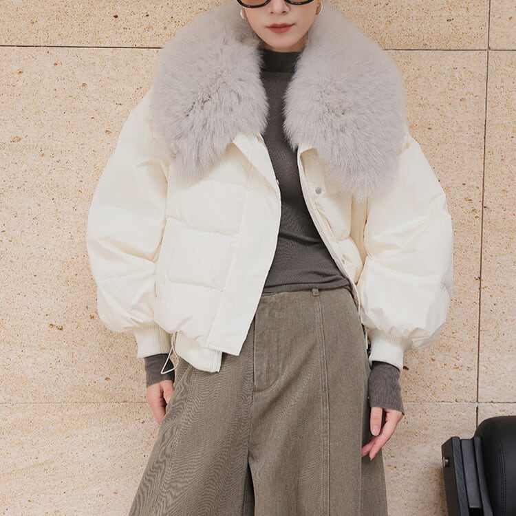 ファー襟 ショート丈 ジップアップ ダウンジャケット 1col H10569