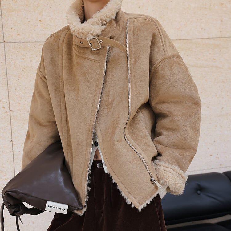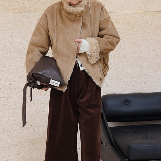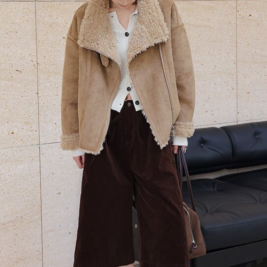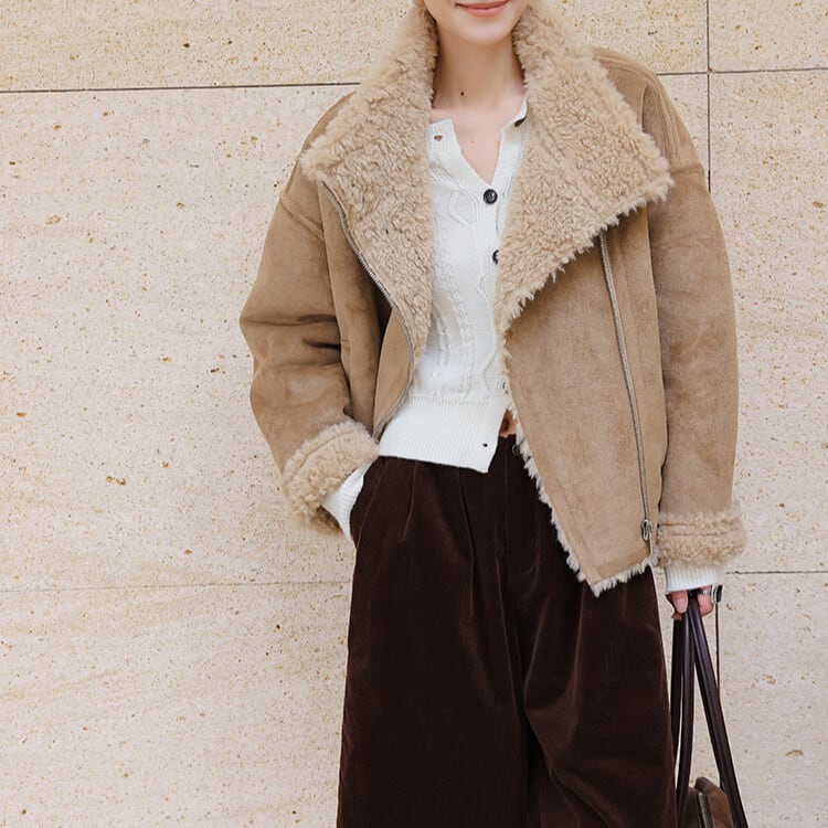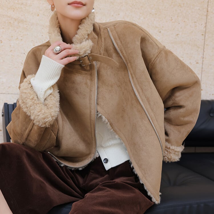 ジップアップ フェイクムートン ジャケット 1col H10570