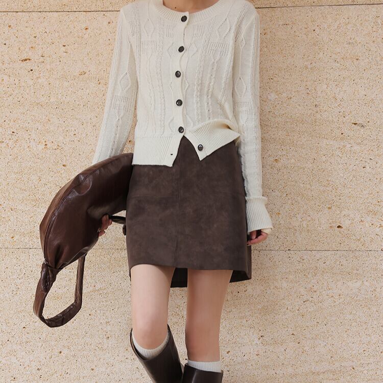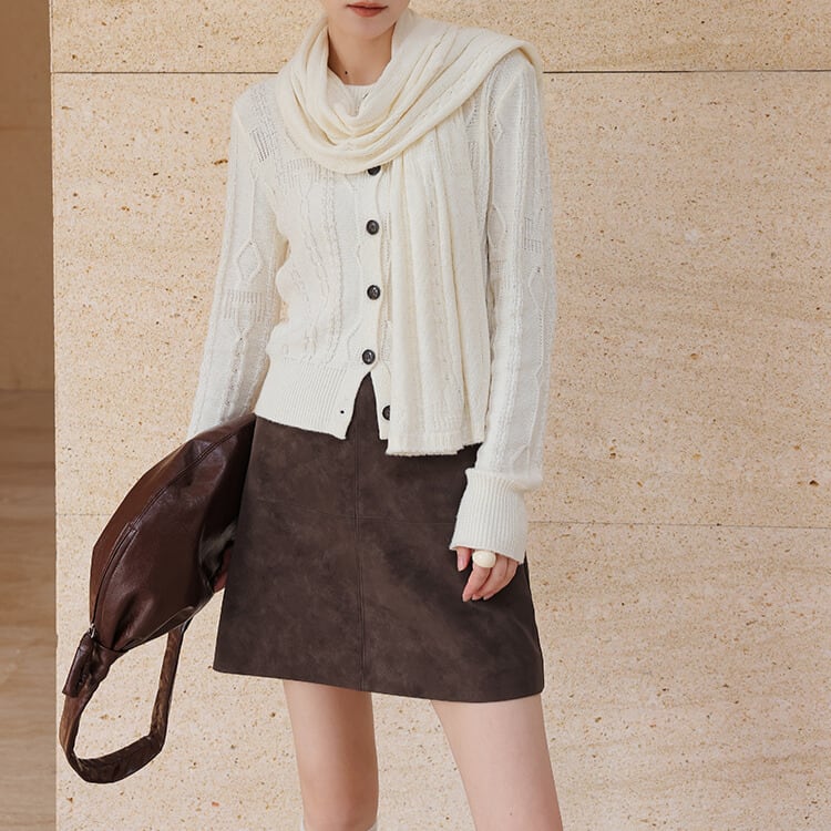 ミニ丈でトレンド感があり、スタイルアップ効果も期待できます。