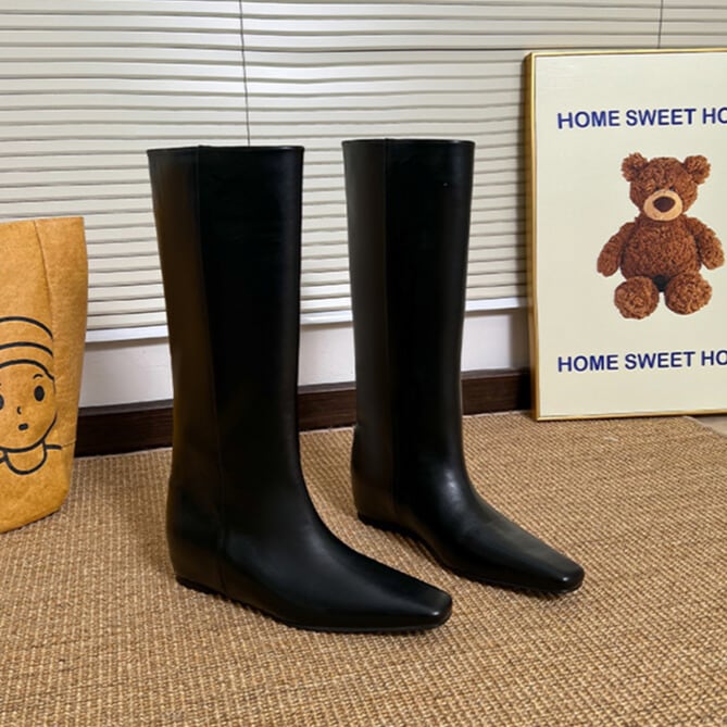 フェイクレザー シークレットインソール ロングブーツ 2col H10216