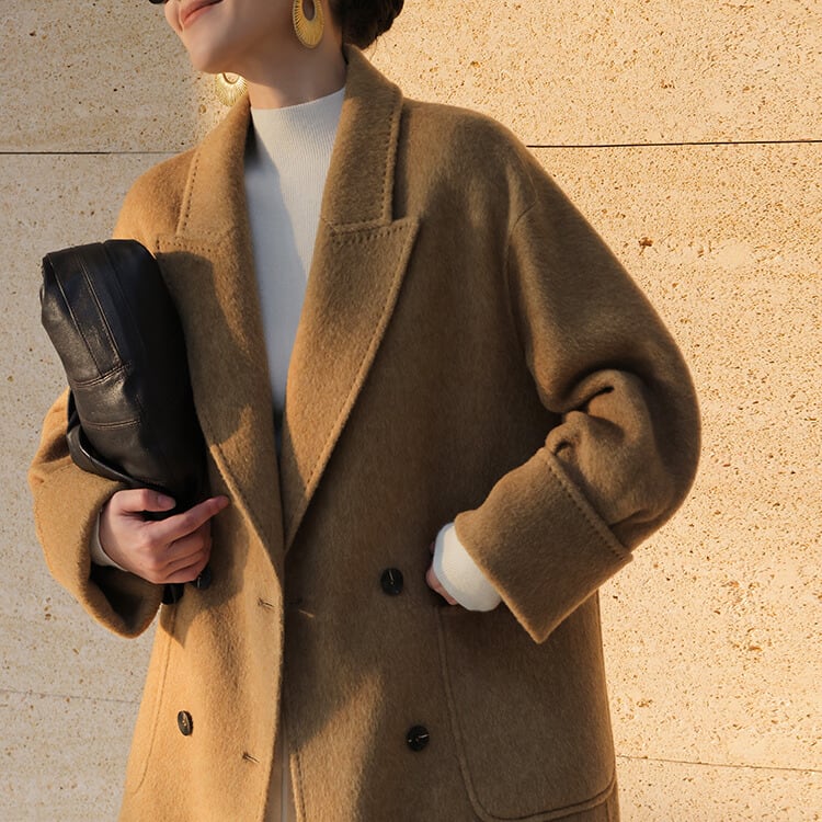 カジュアルにもきれいめにも着こなせるダブルブレストコート。
