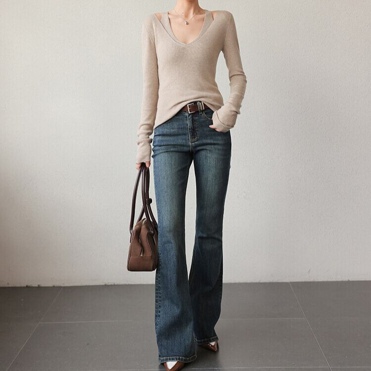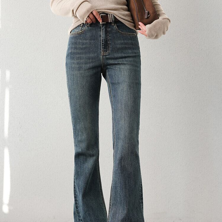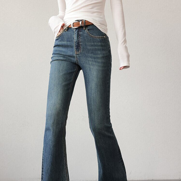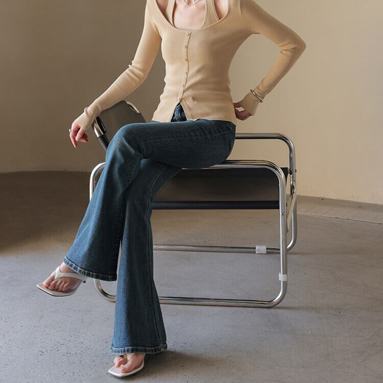 脚長効果が期待できる、ブーツカットシルエットのデニムパンツ。