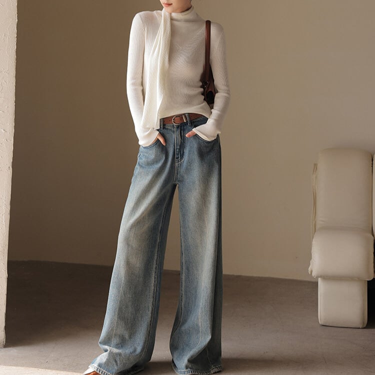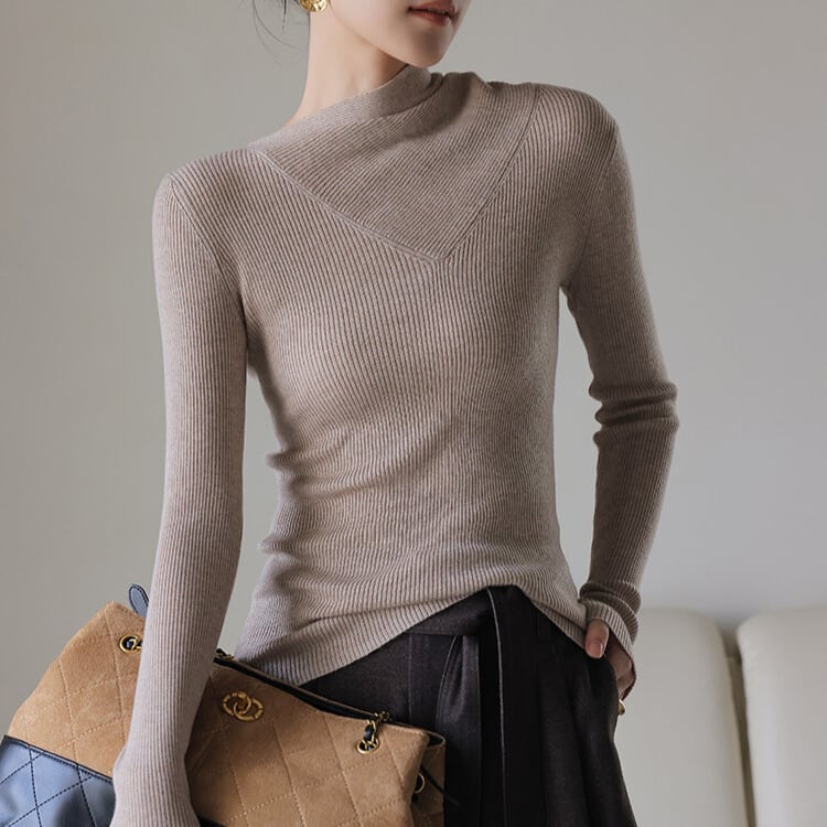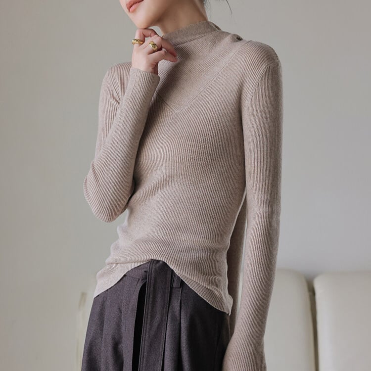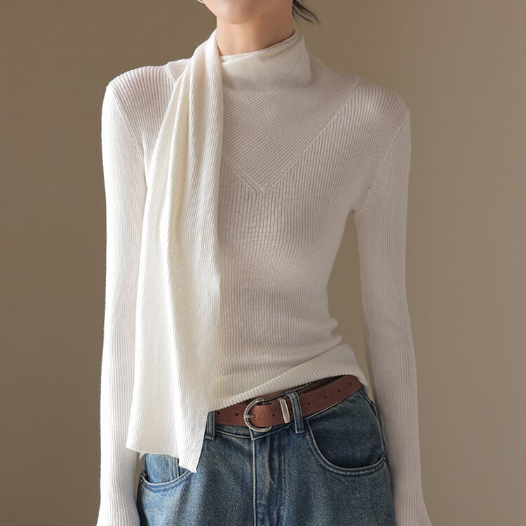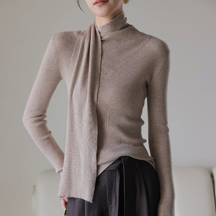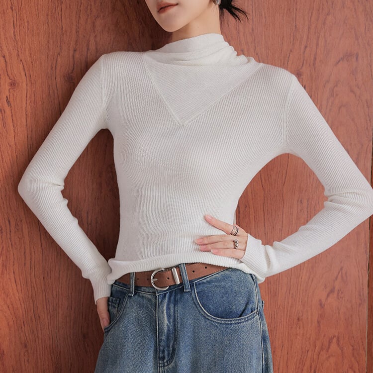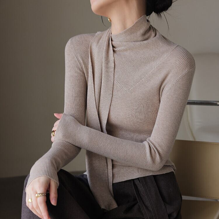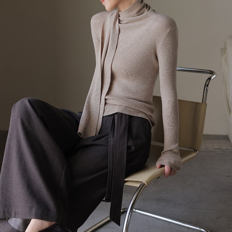 スカーフ風 リブ編み ニットトップス 2col H11095