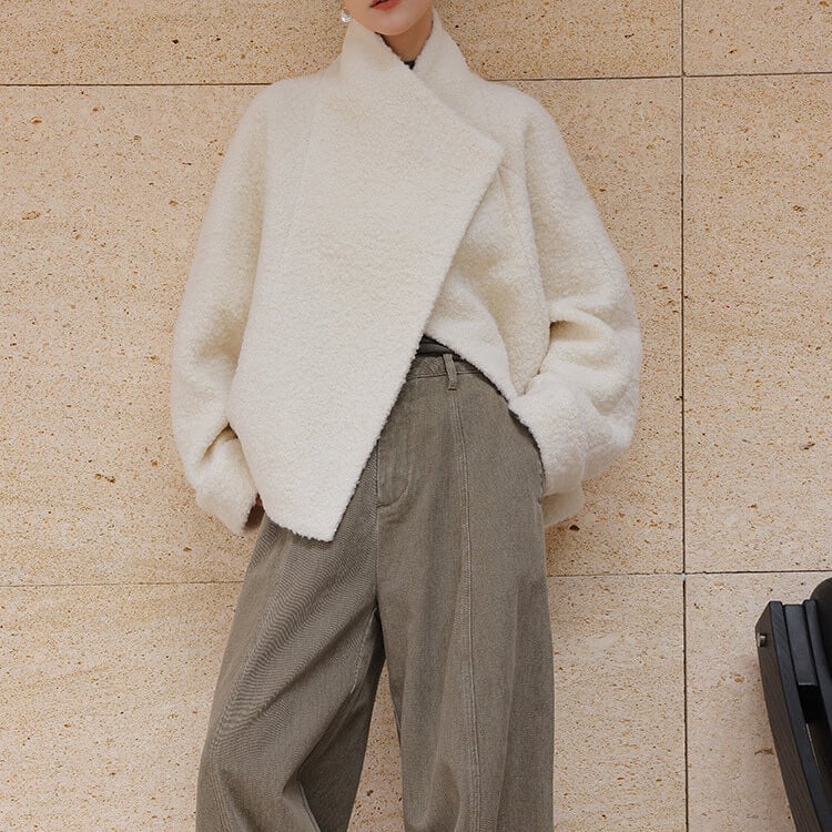 斜めに重なる前立てが印象的なデザインで、羽織るだけで洗練された雰囲気に。