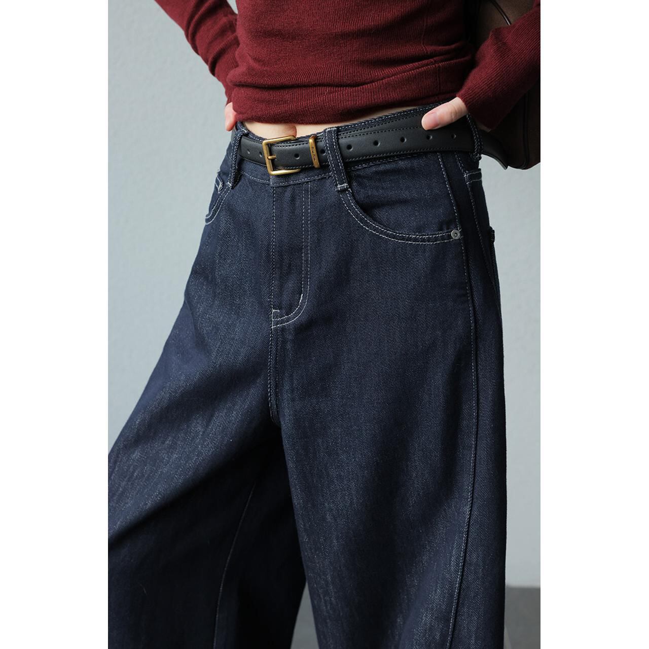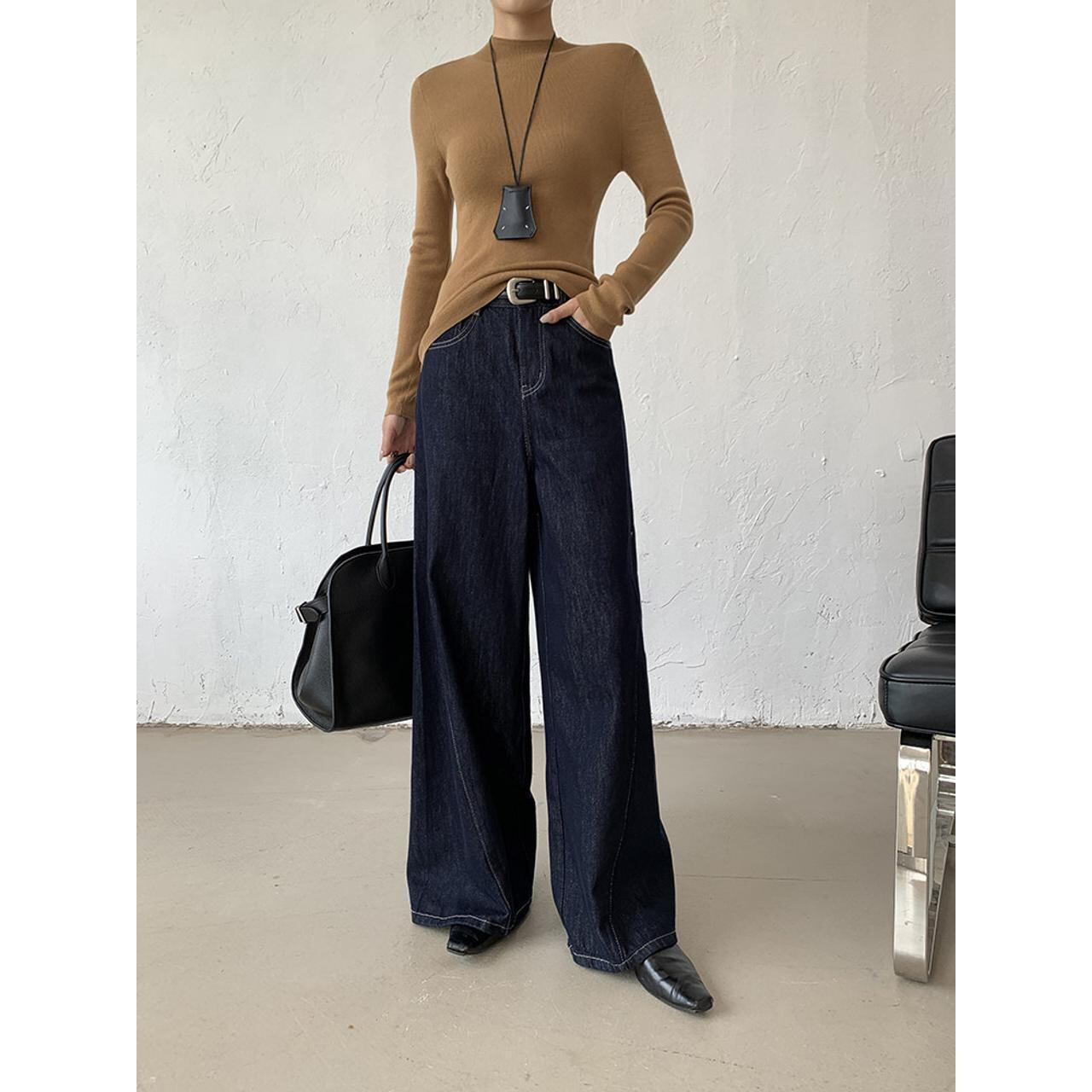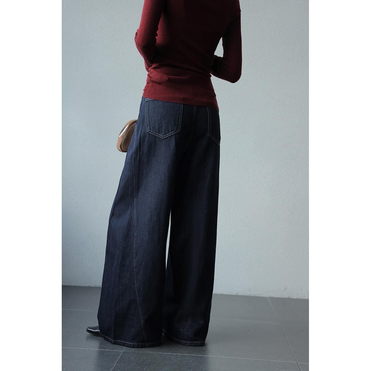 カジュアルながらも洗練された印象を与えるフルレングスデニム。