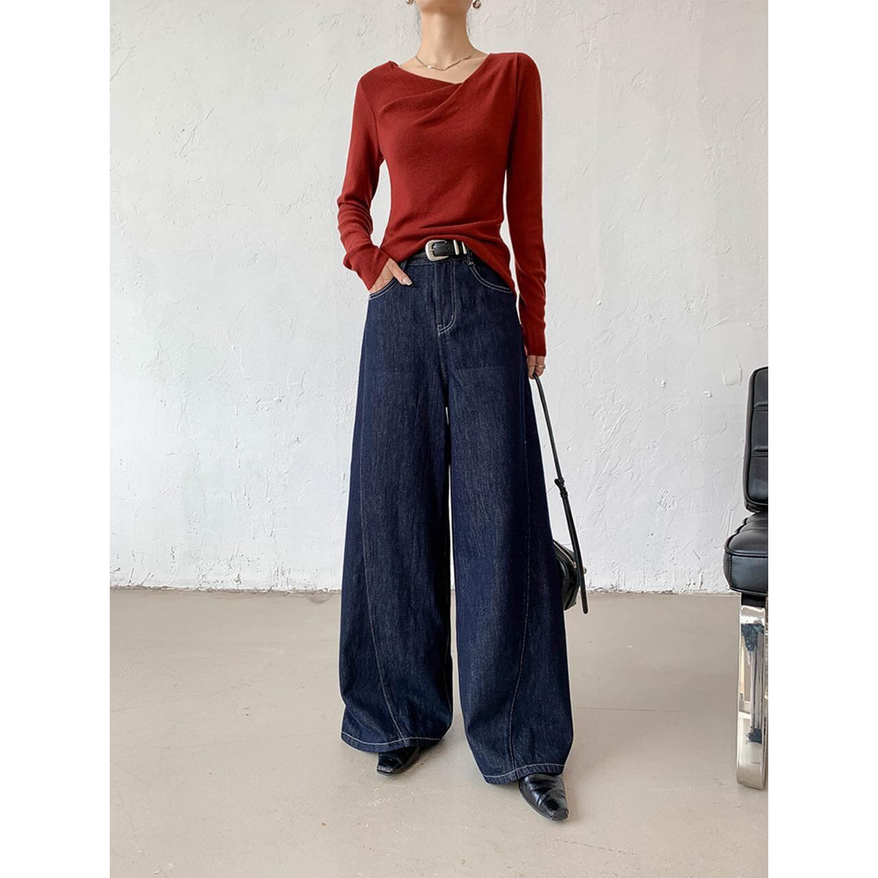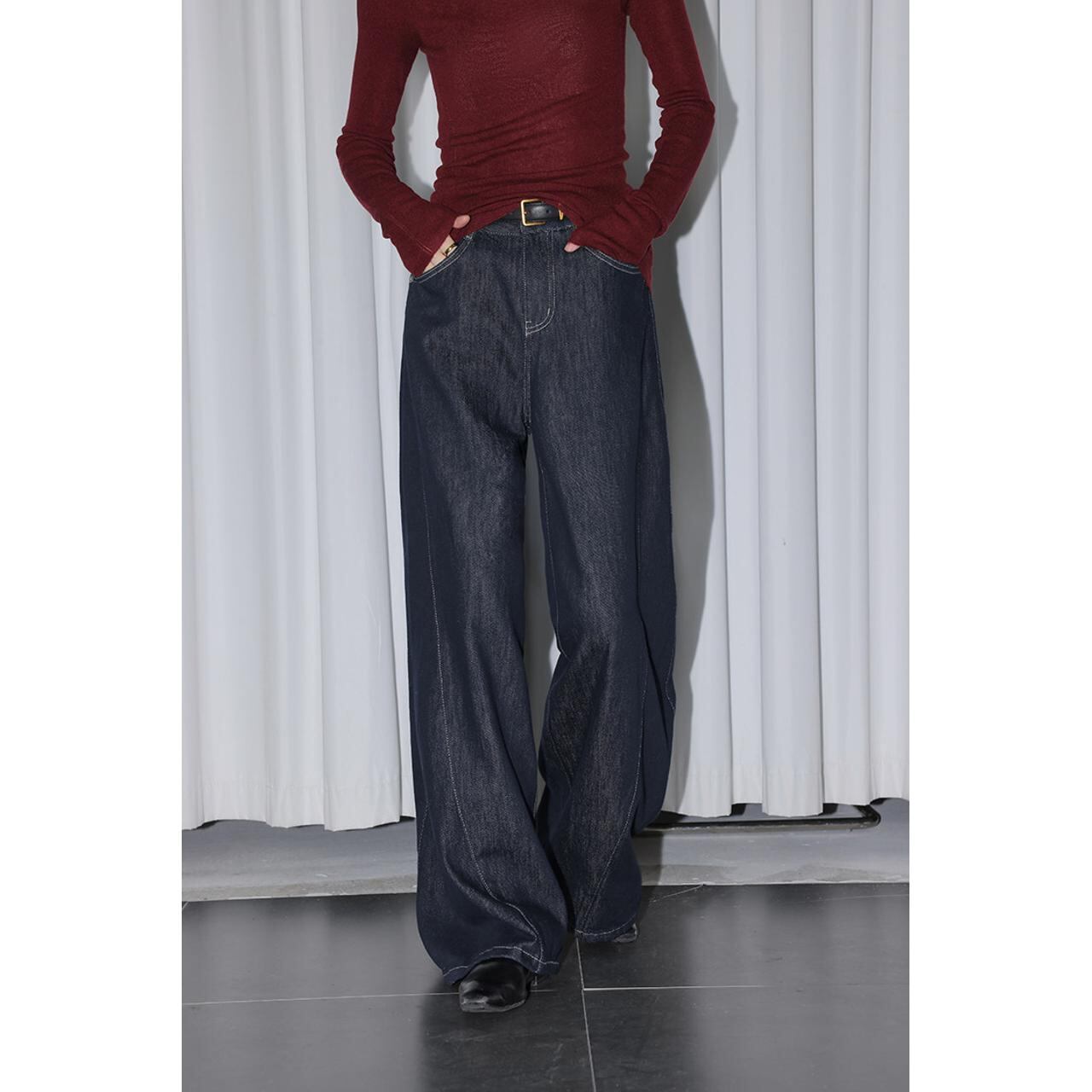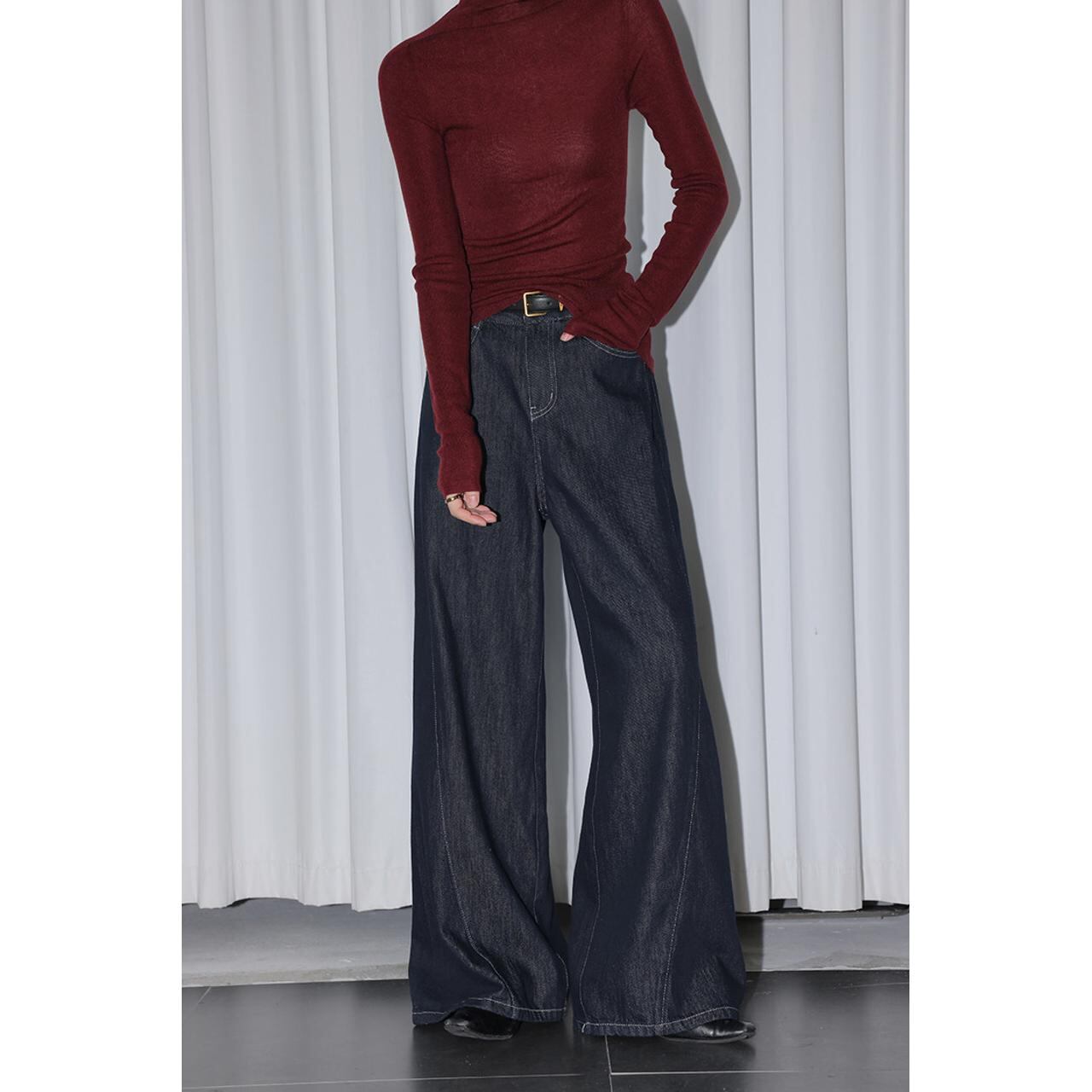 カジュアルながらも洗練された印象を与えるフルレングスデニム。