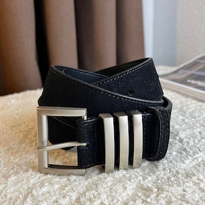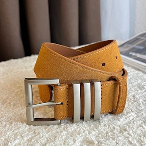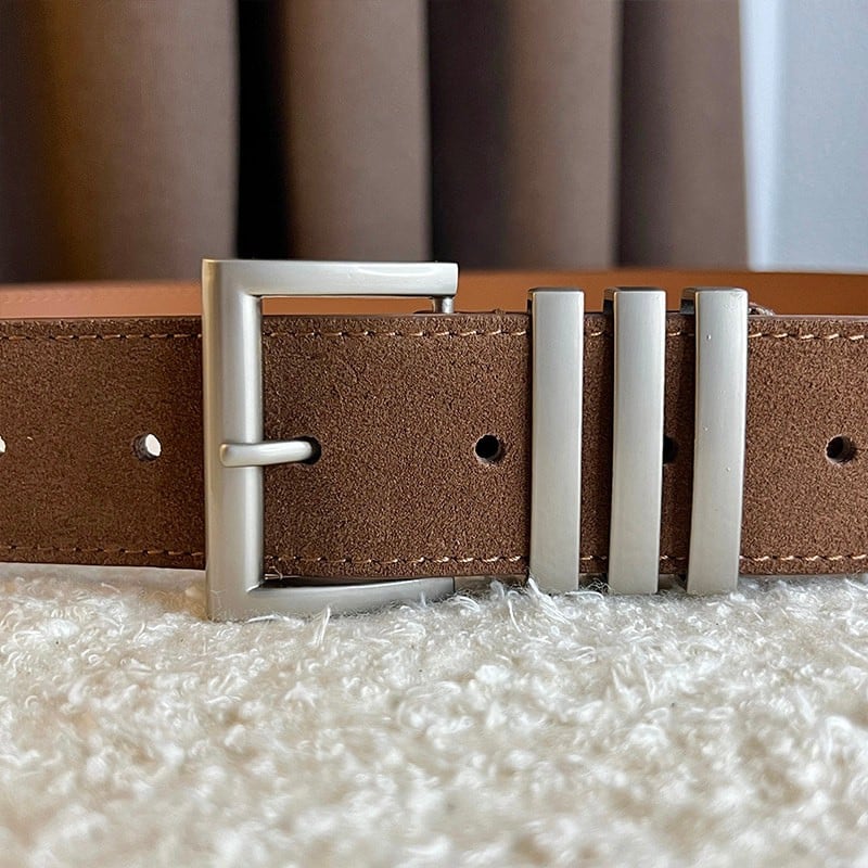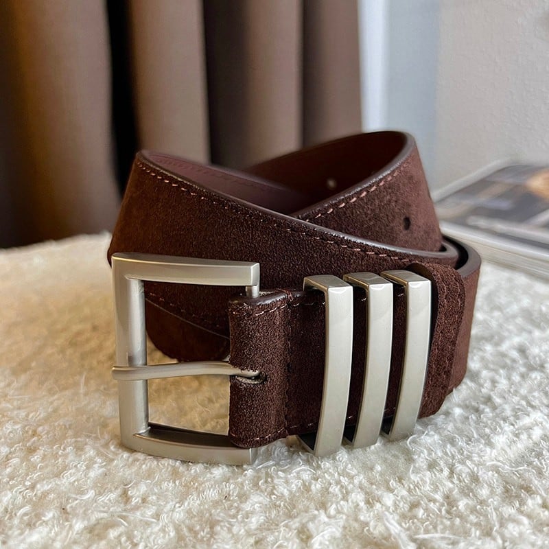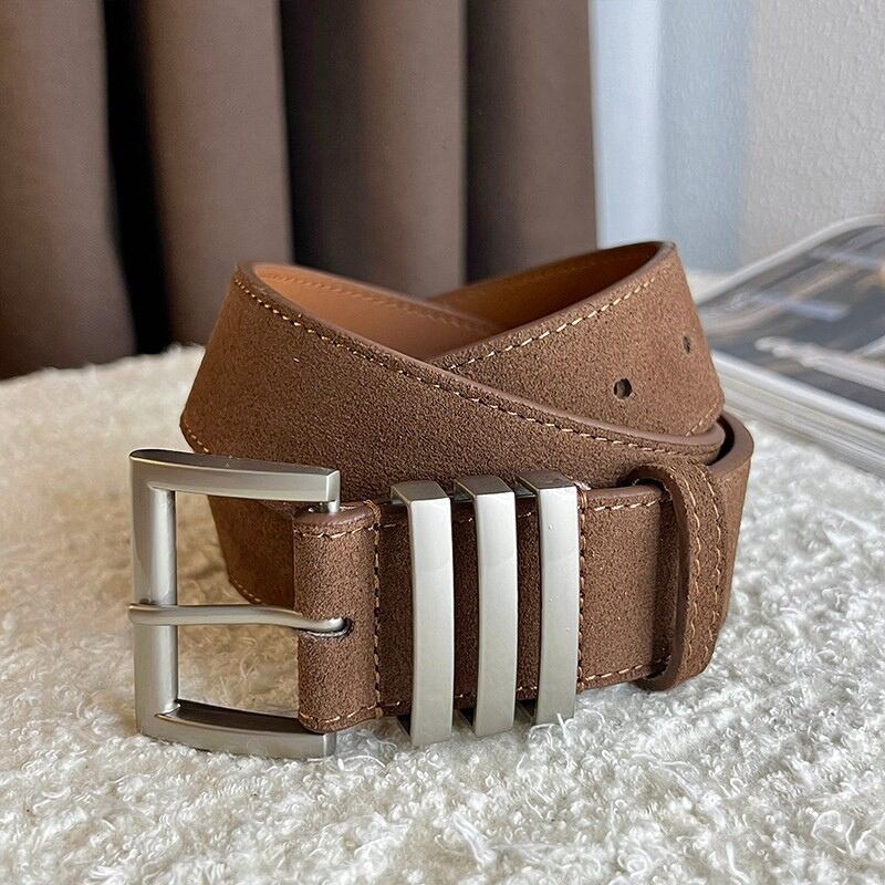 普段の着こなしにアクセントを加えてくれる、スエード調素材のベルト。