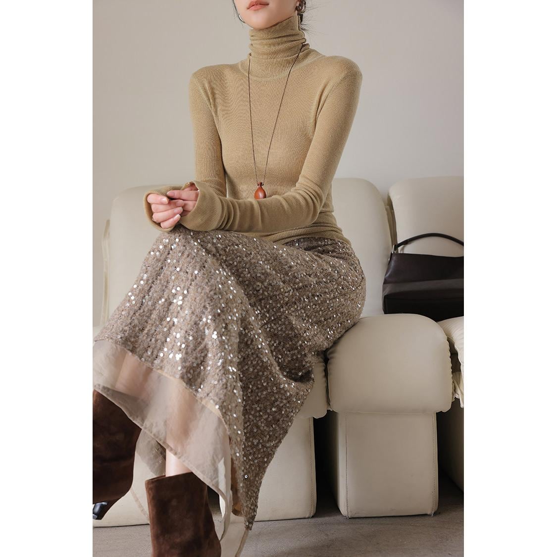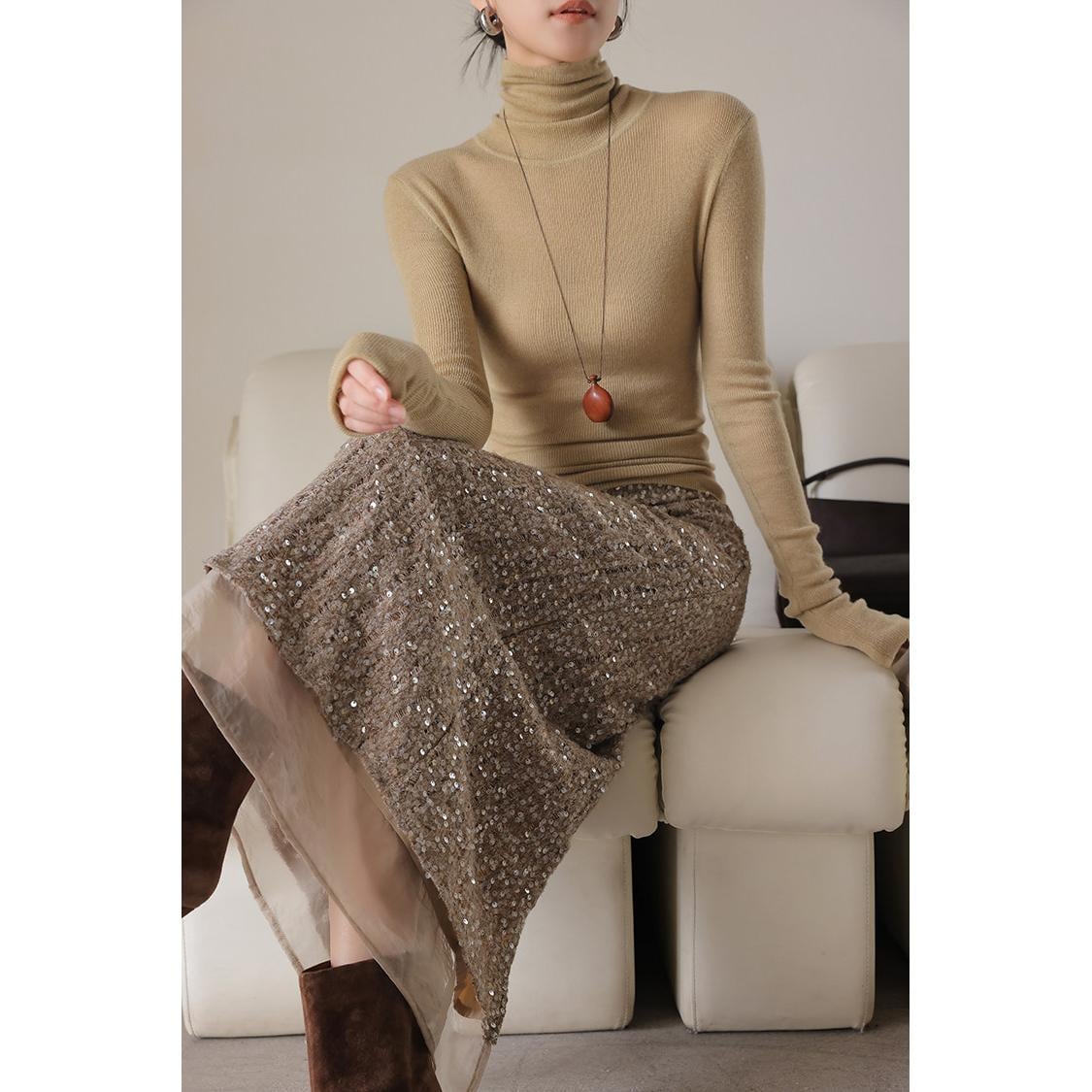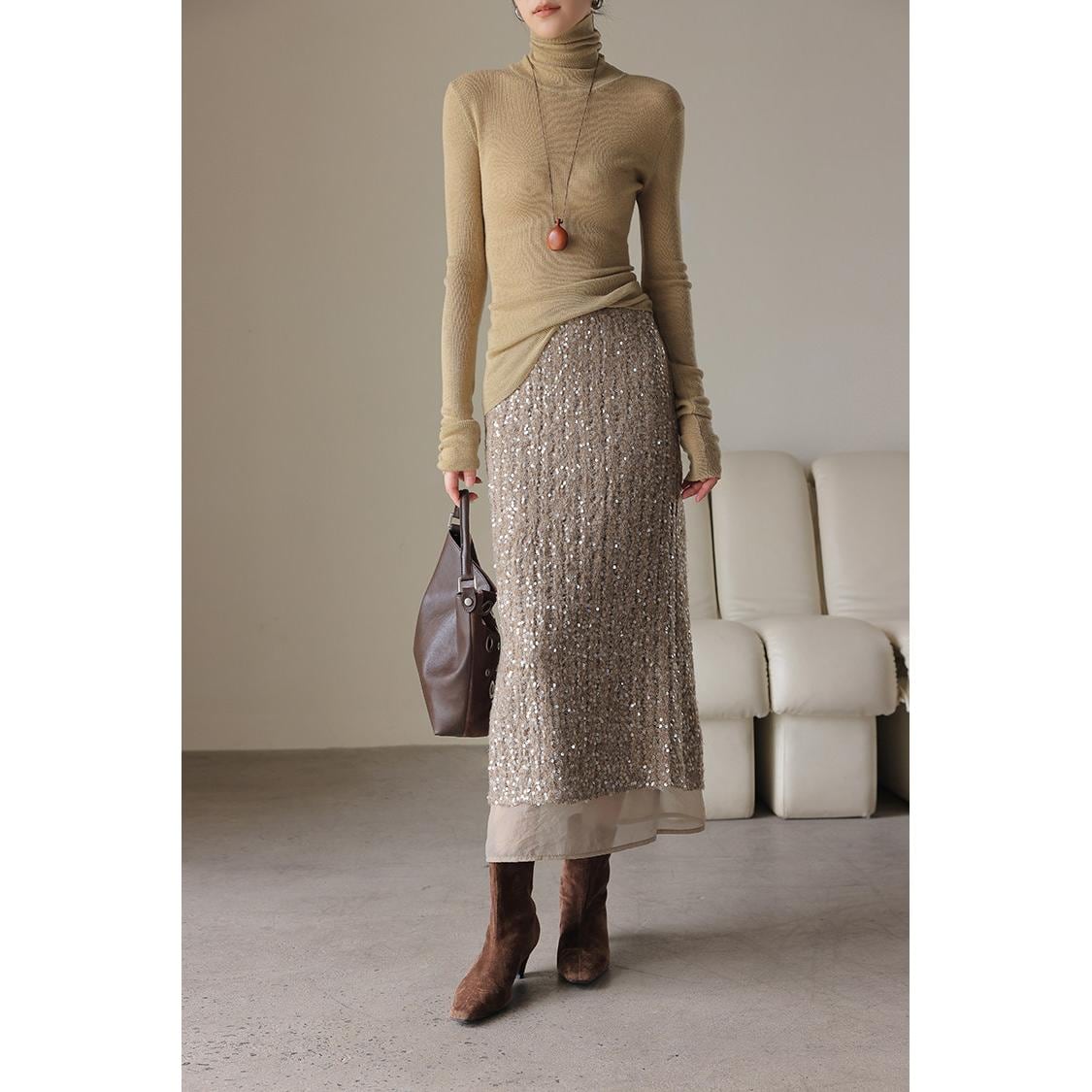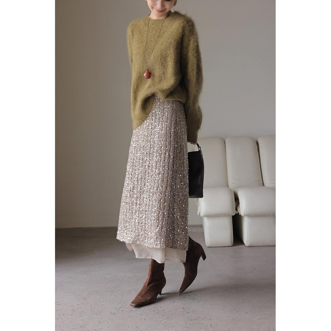 ロングスカートはタイトなシルエット、ミニスカートは体のラインに程よく沿うストレートなシルエットで、どちらも女性らしいバランスの良い着こなしが可能です。