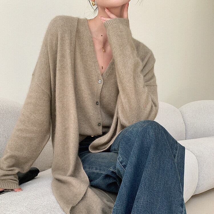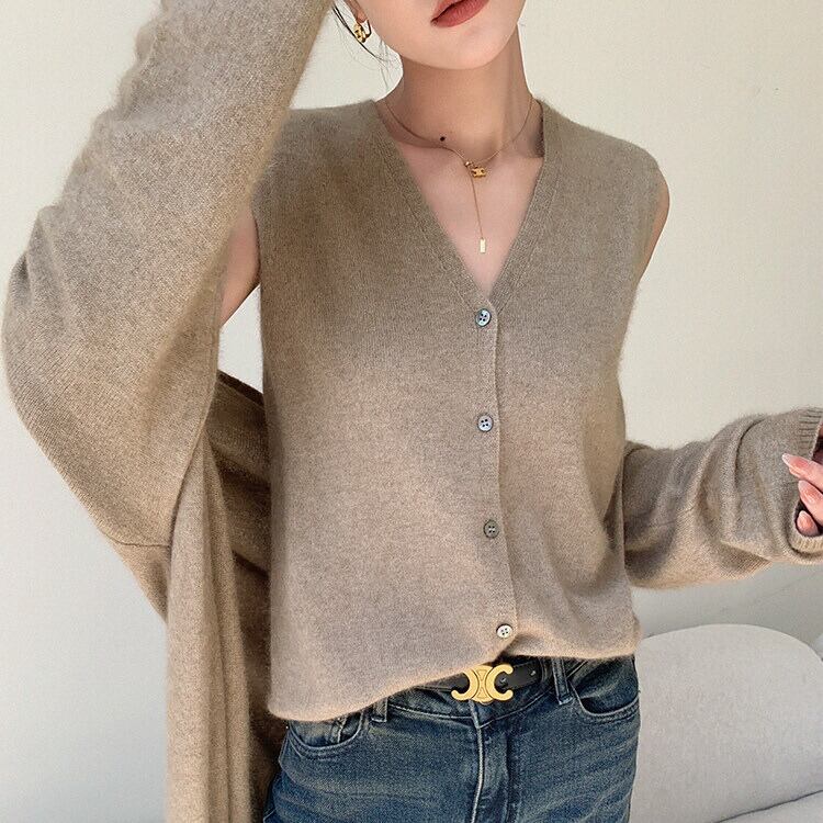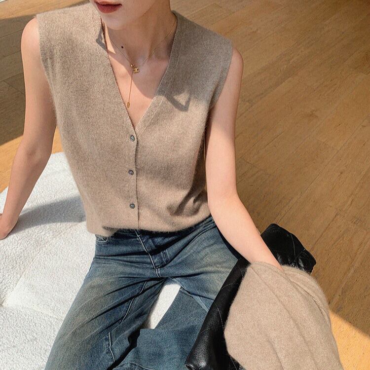 Vネックのデザインが顔まわりをすっきりと見せてくれます。