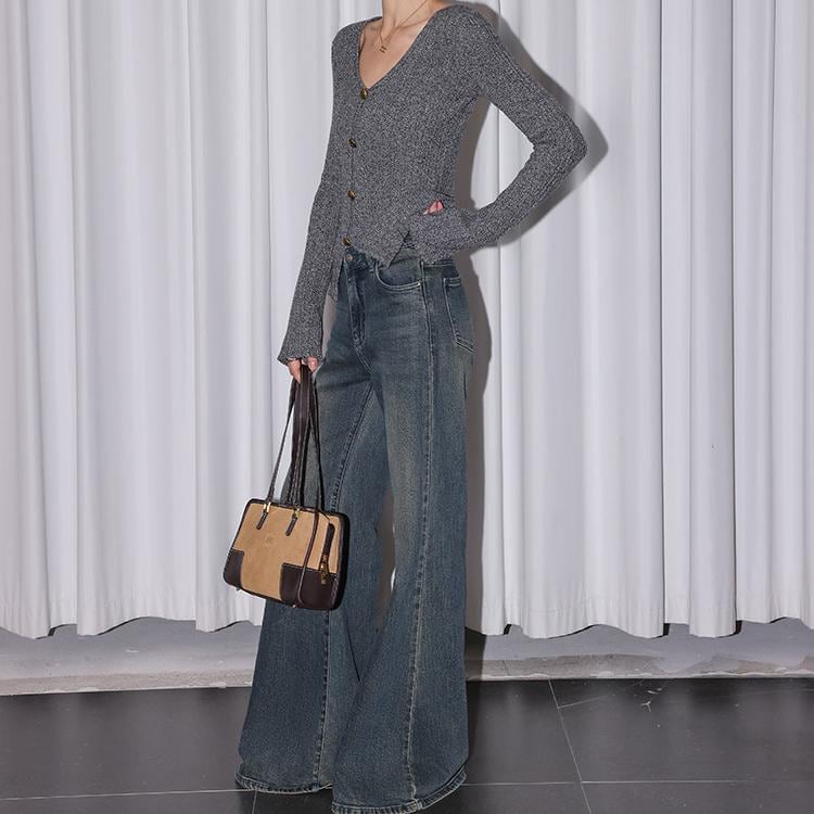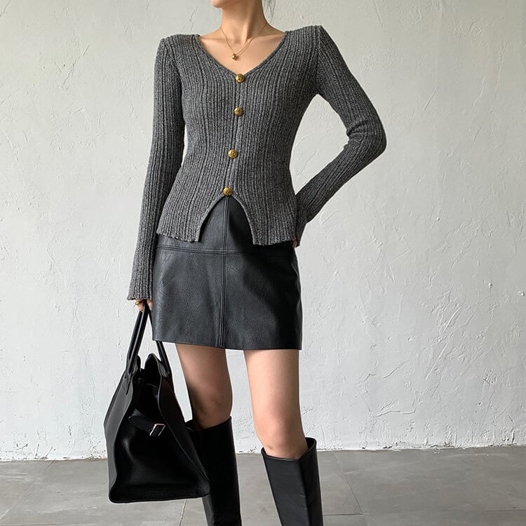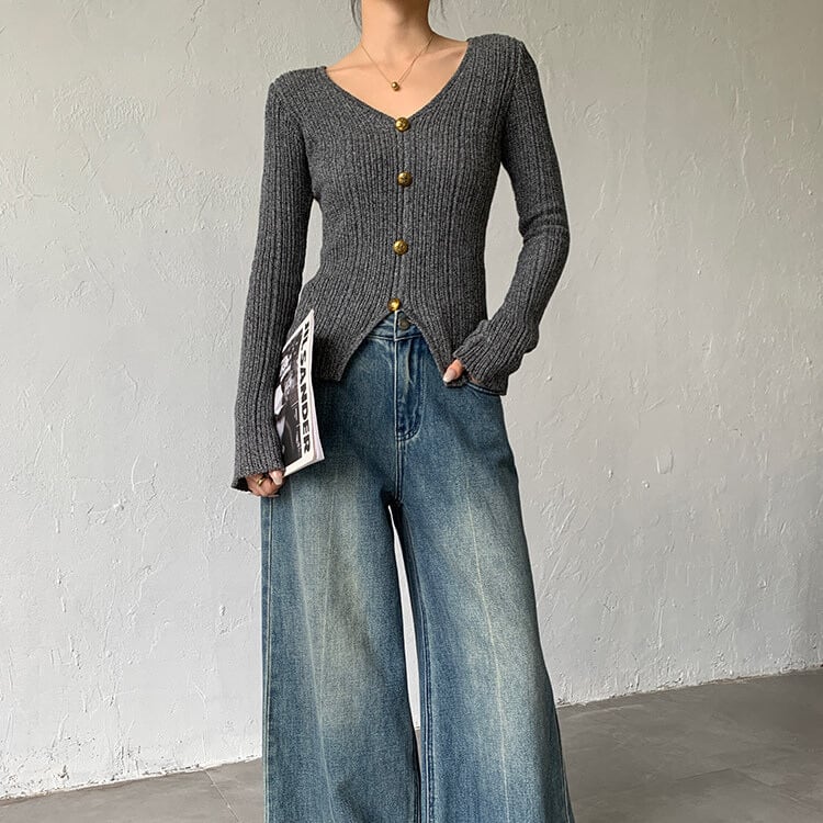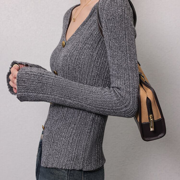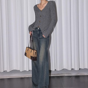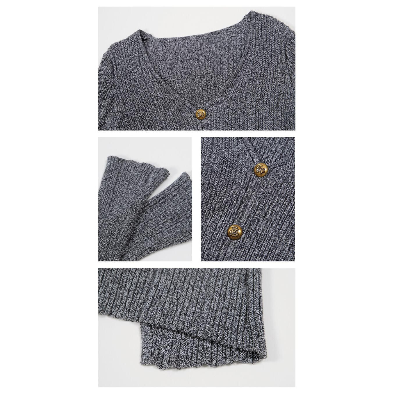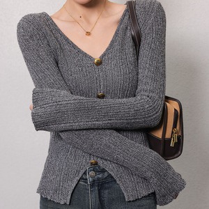 ゴールド飾りボタン Vネック ニット 1col H11107