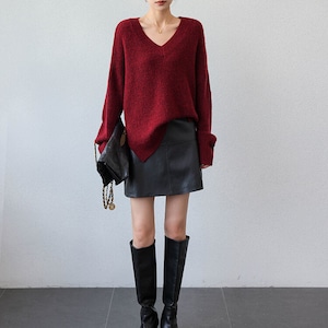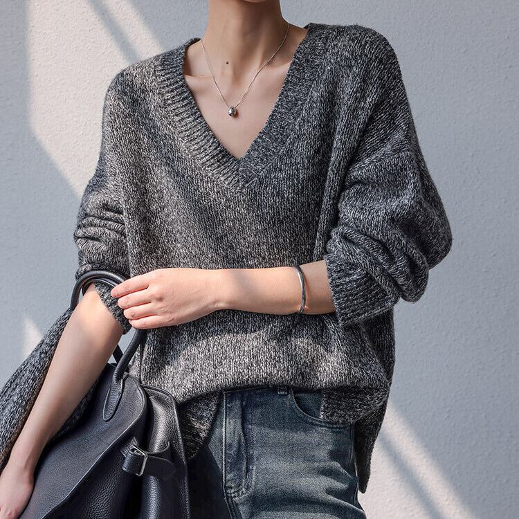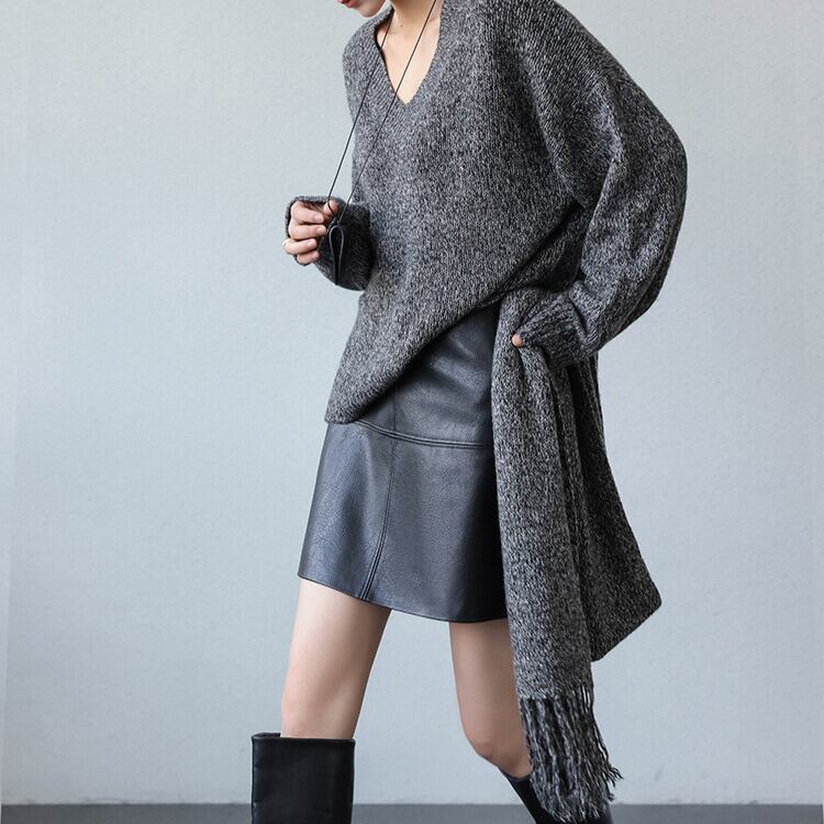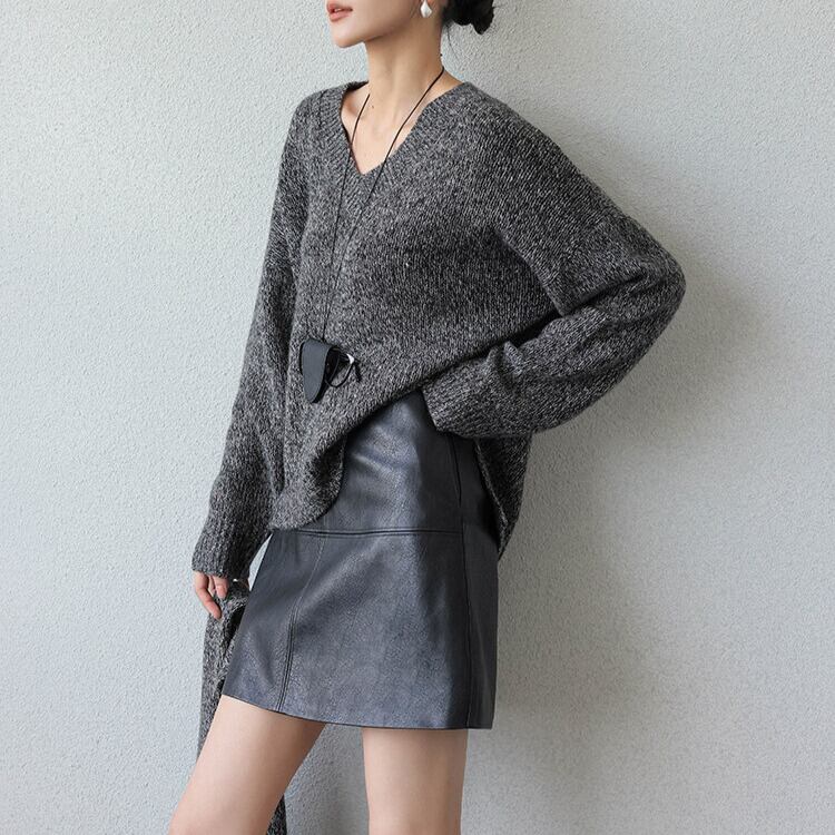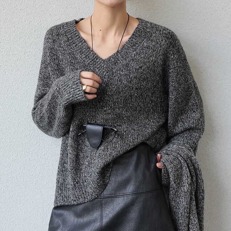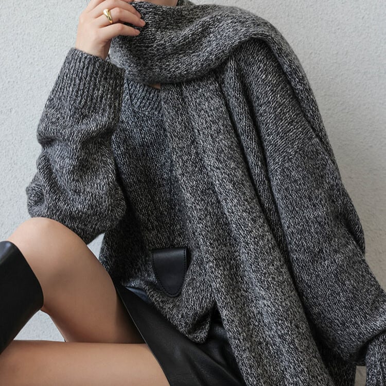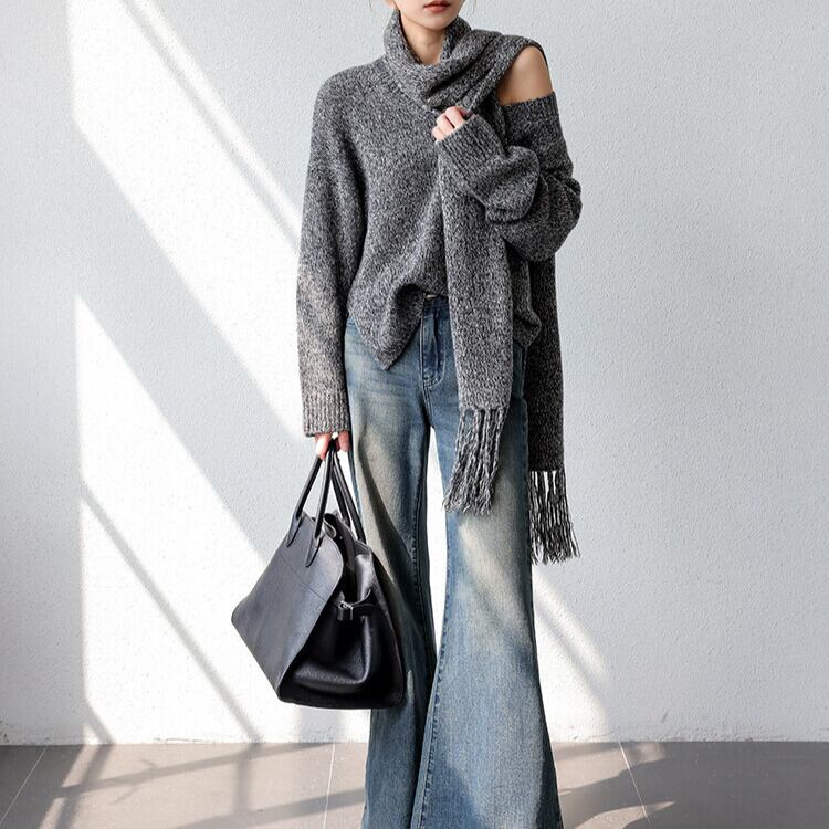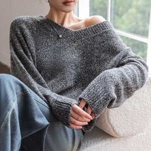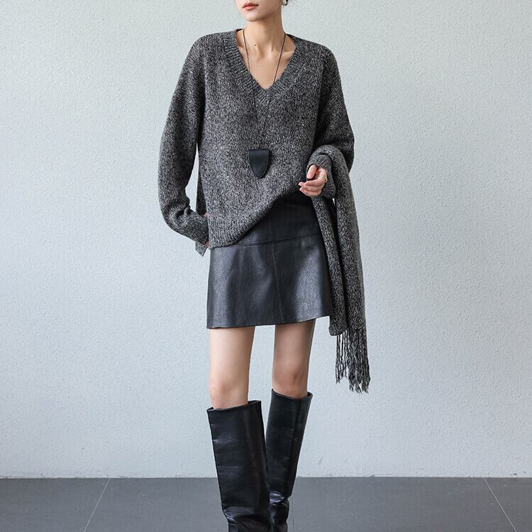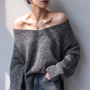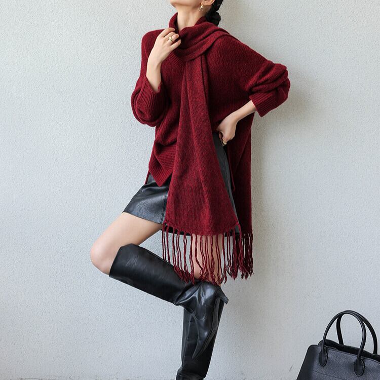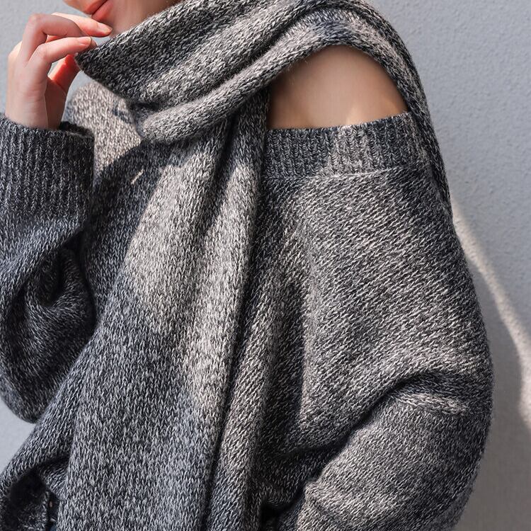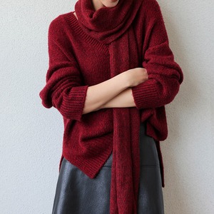 マフラー付き Vネック ニットプルオーバー 2col H11109