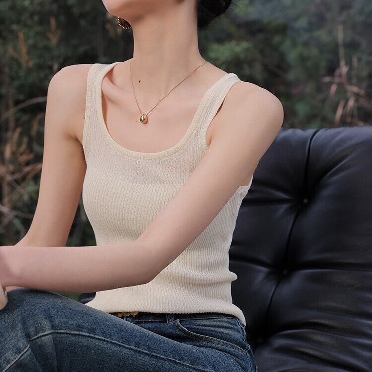 リブ編み ノースリーブ ニットキャミソール 1col H11115