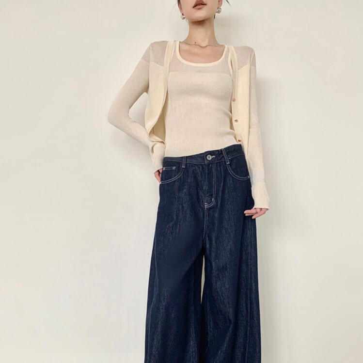 ※『ボタンフロント リブニット カーディガン 1col H11116』とセットアップとして着用いただけます。