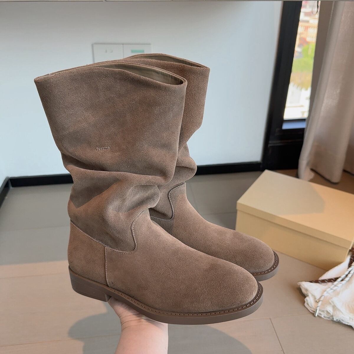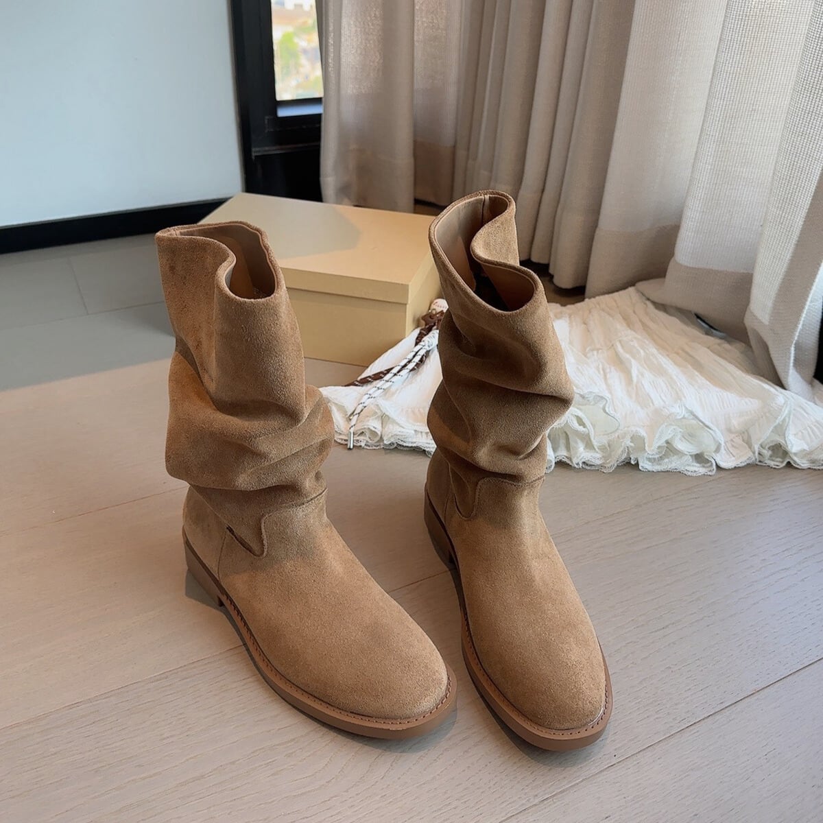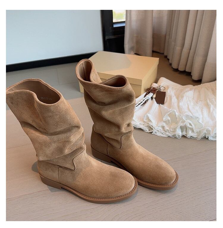 スエード調 ドレープ ブーツ 2col H10224