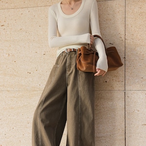 カジュアルながらも洗練された印象のフルレングスパンツ。ワイドなシルエットが、リラックス感とこなれ感を演出します。両サイドのパッチポケットがアクセントになり、普段使いはもちろん、少し上品なスタイルにも合わせやすいアイテムです。お洒落な着こなしを楽しめます。
