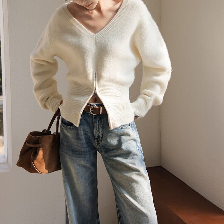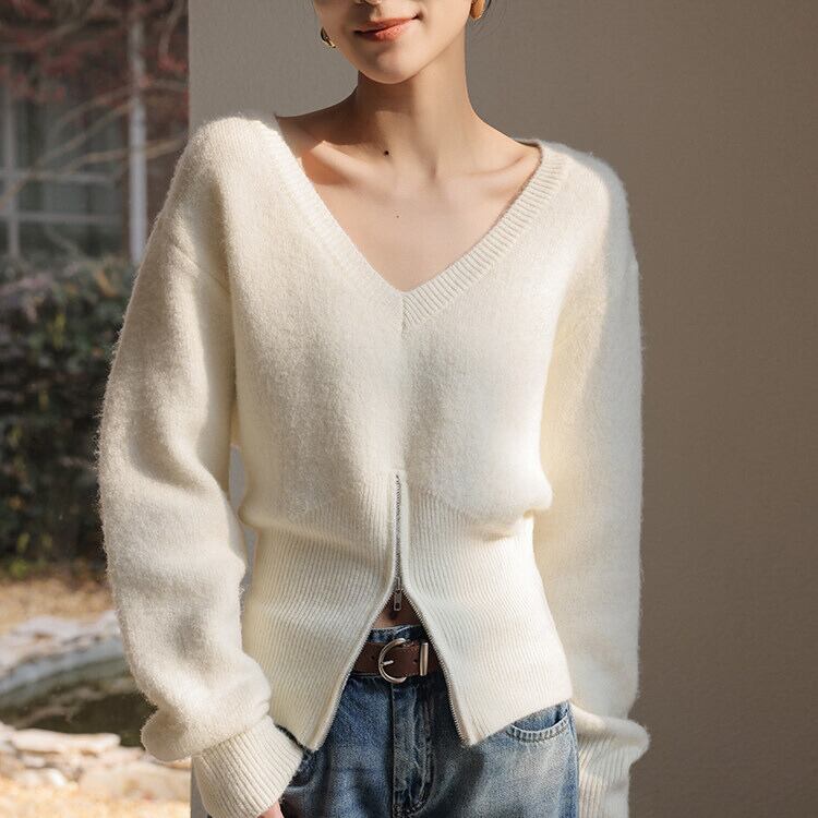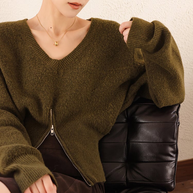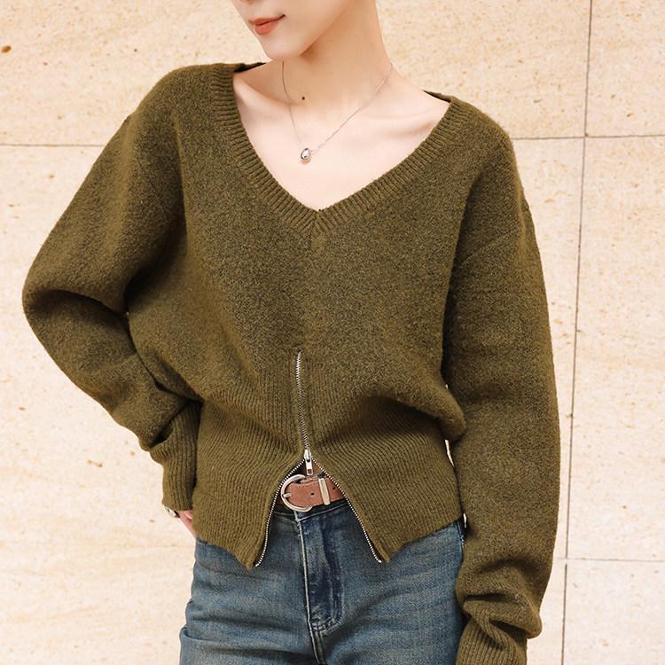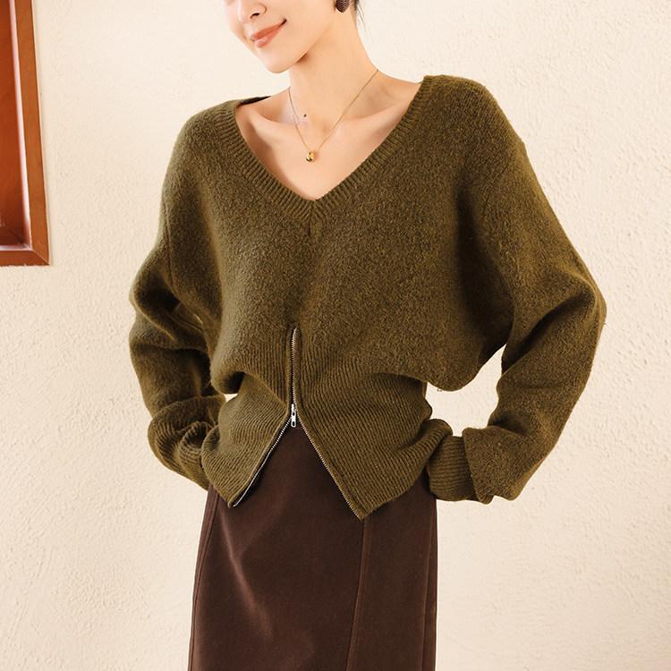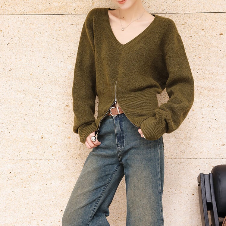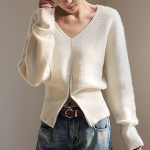 ジップアップ Vネック ニットカーディガン 2col H11126