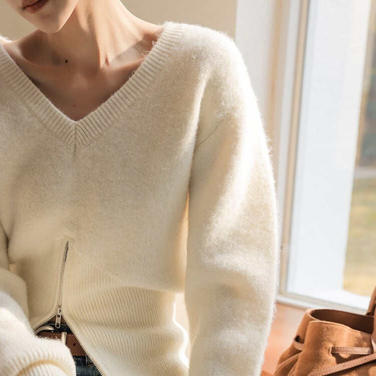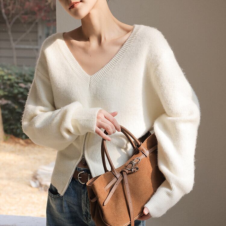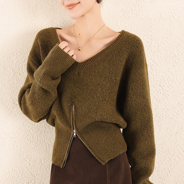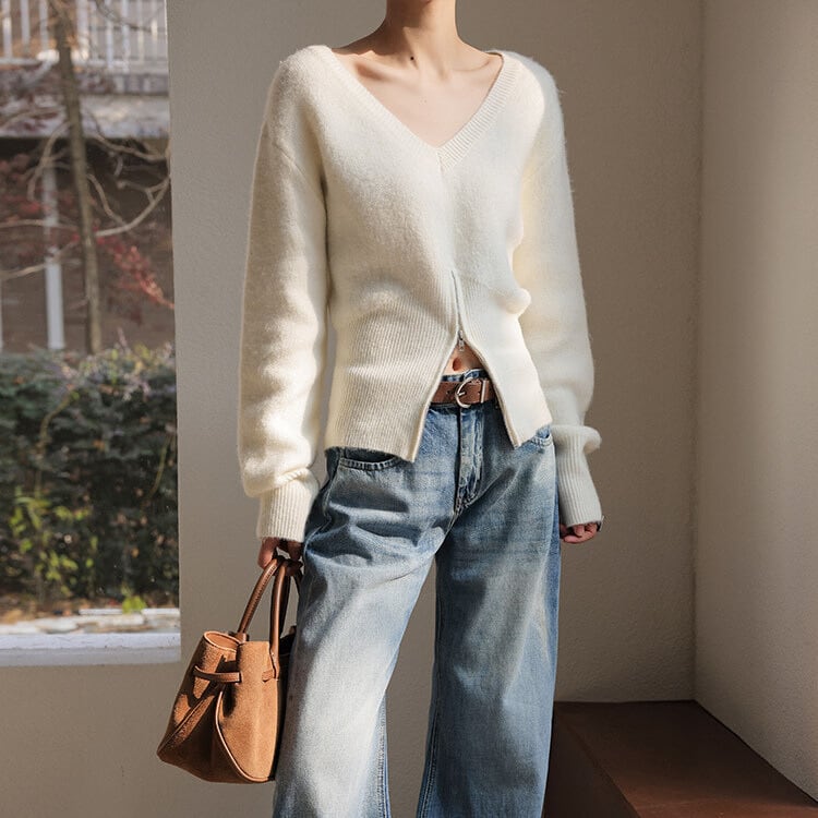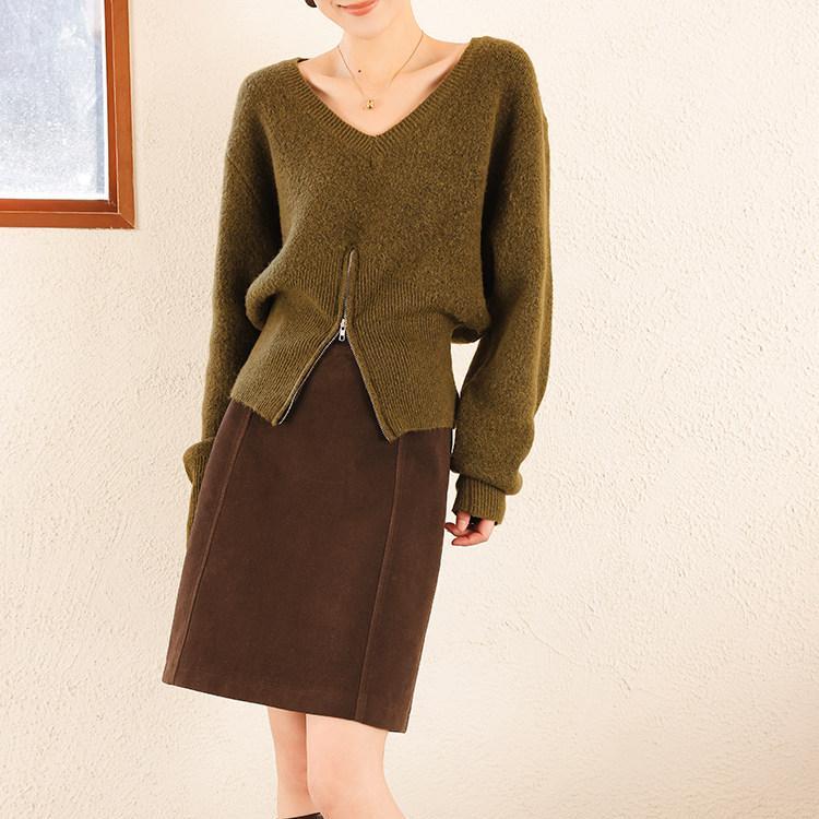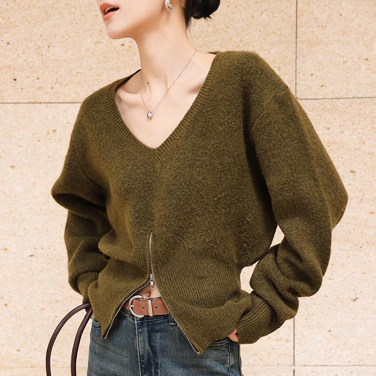 ジップアップ Vネック ニットカーディガン 2col H11126