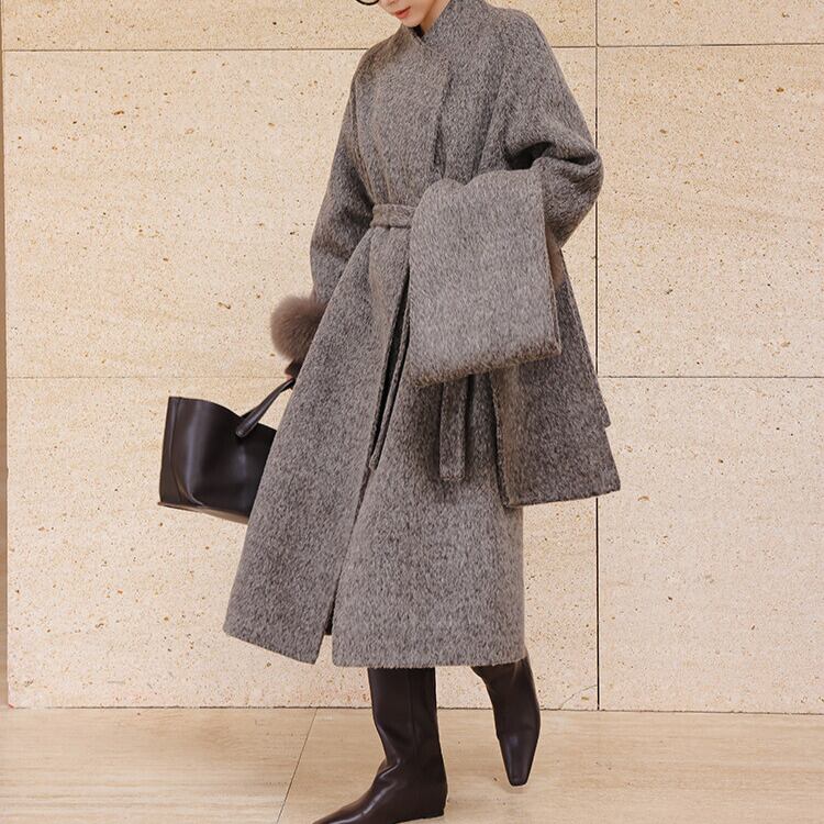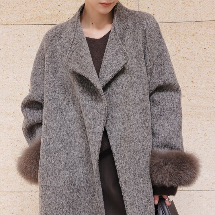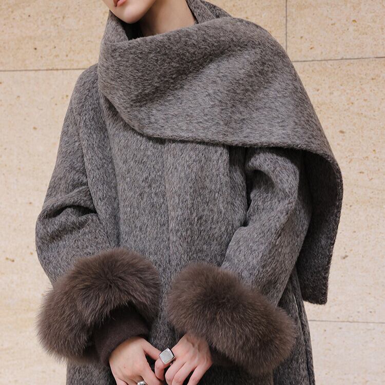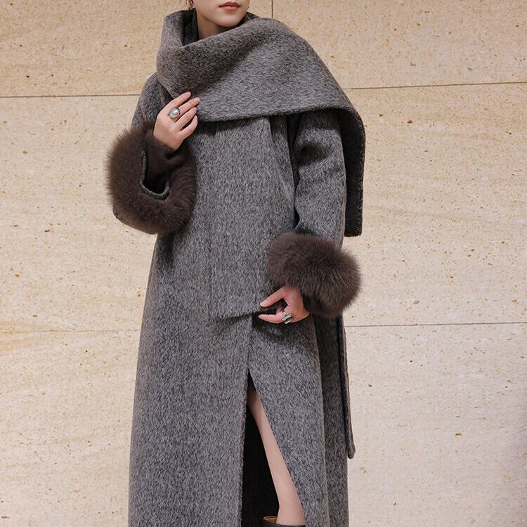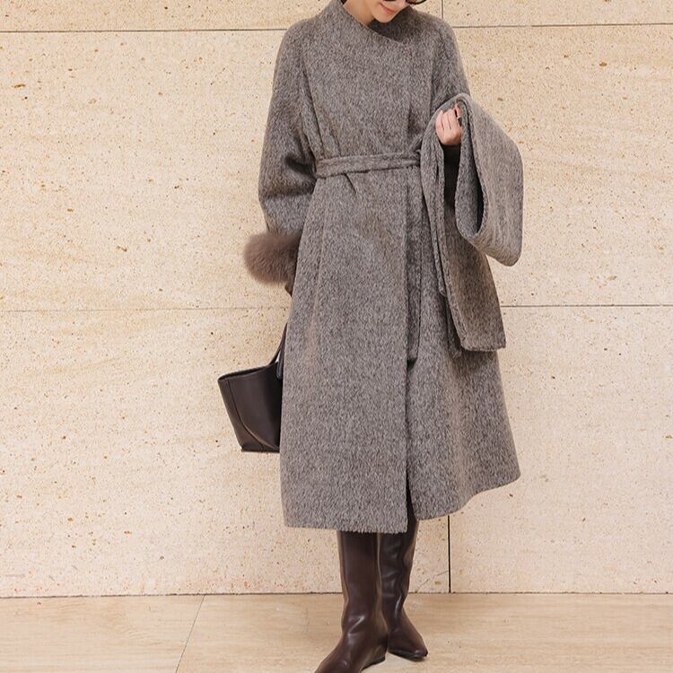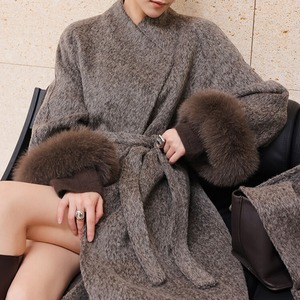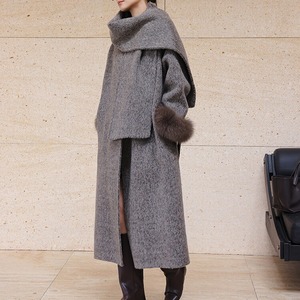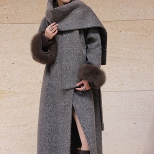 マフラー付き ボリュームファーカフス コート 1col H10587