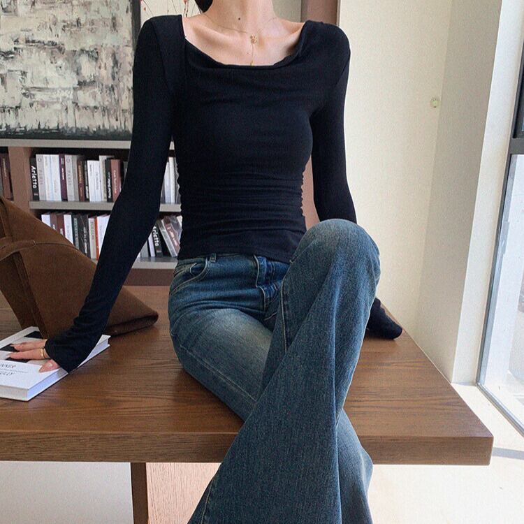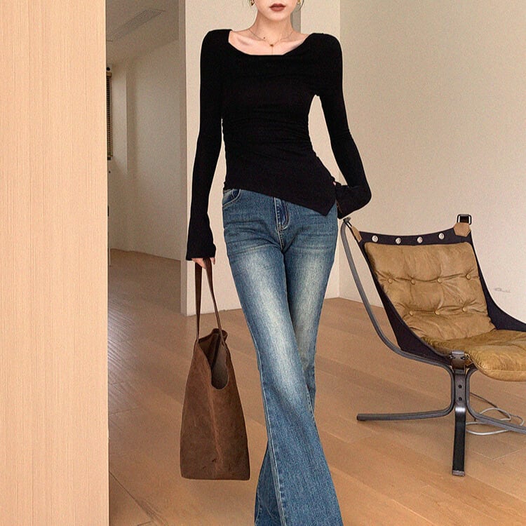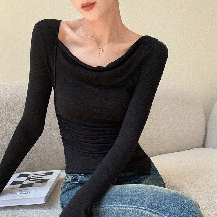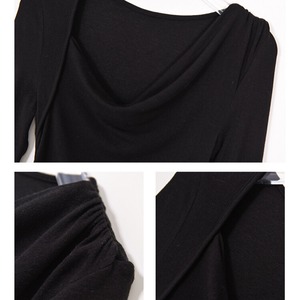 ドレープのデザインが、シンプルな着こなしにアクセントを加えてくれます。