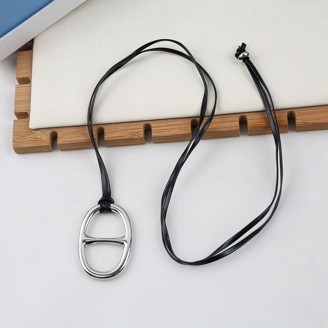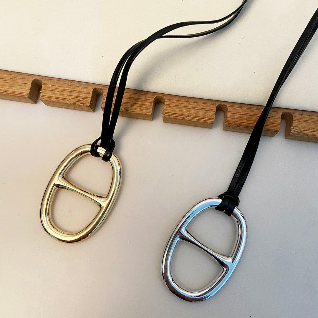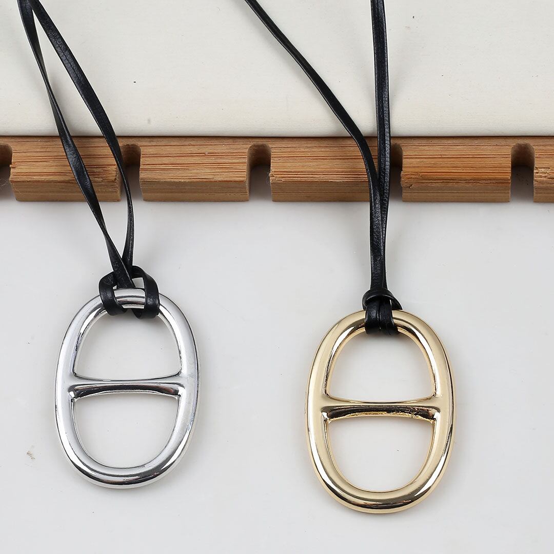 レザー紐 オーバル型ペンダント ネックレス 2col H10226