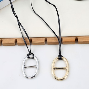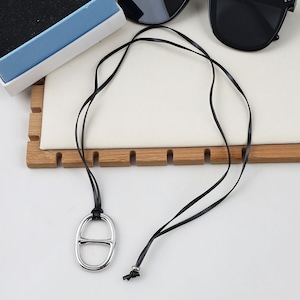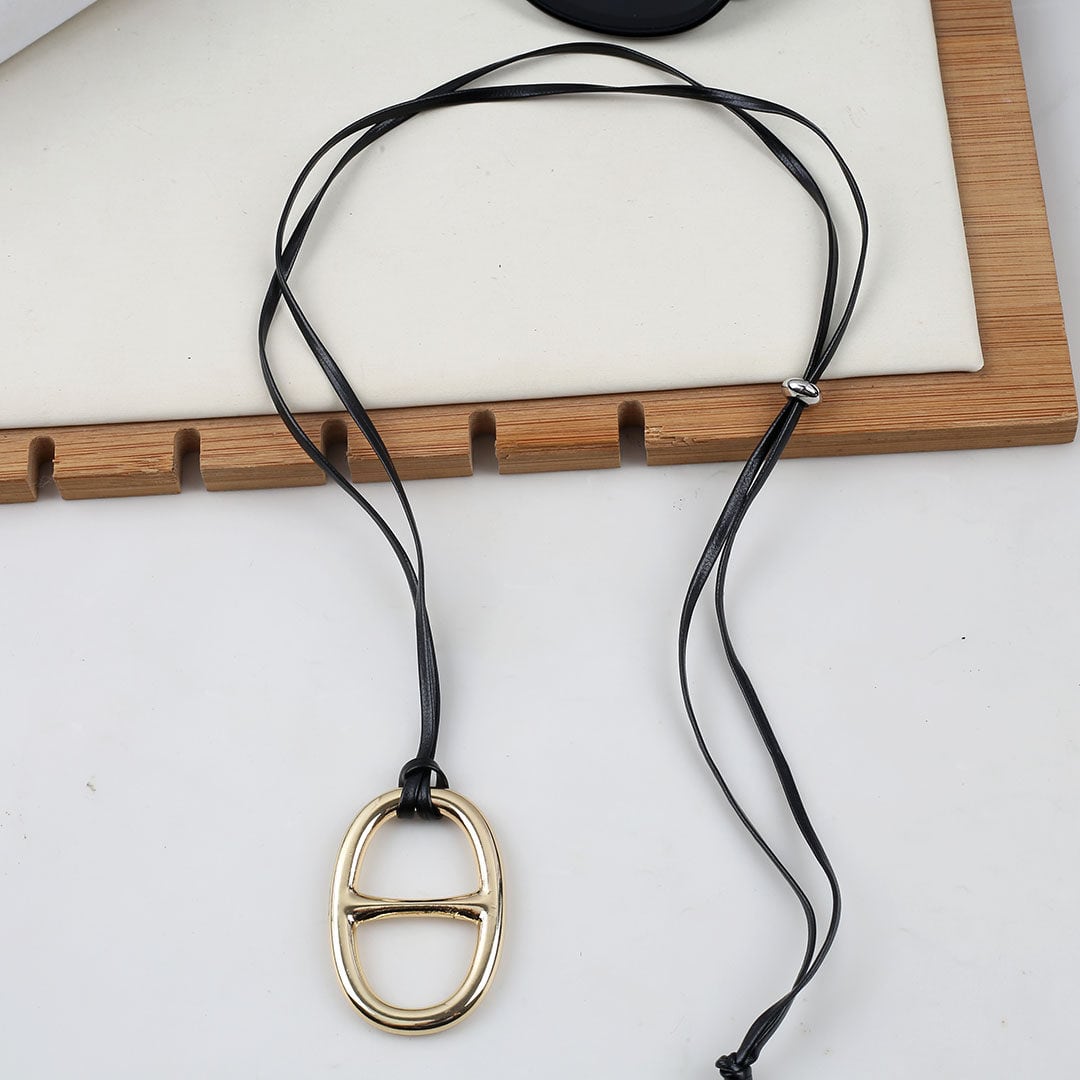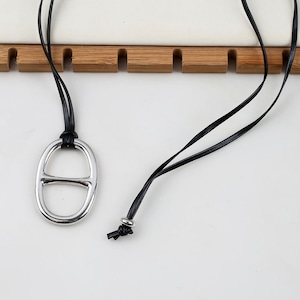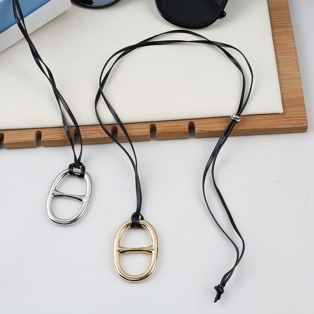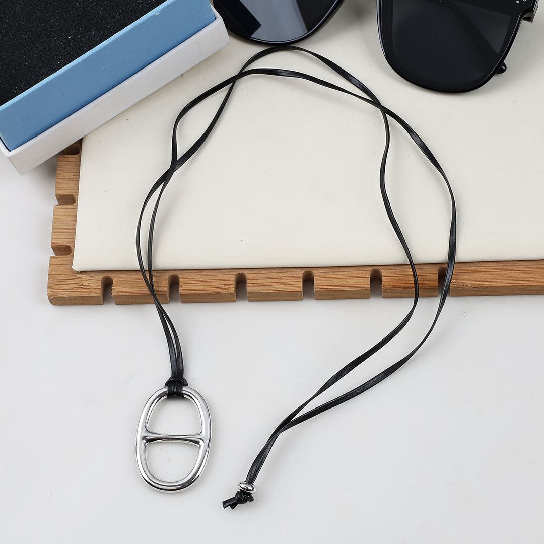 レザー紐 オーバル型ペンダント ネックレス 2col H10226