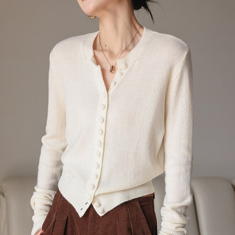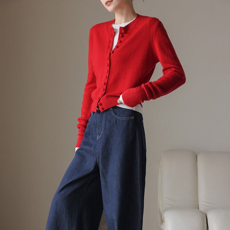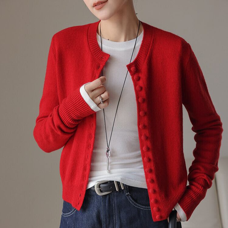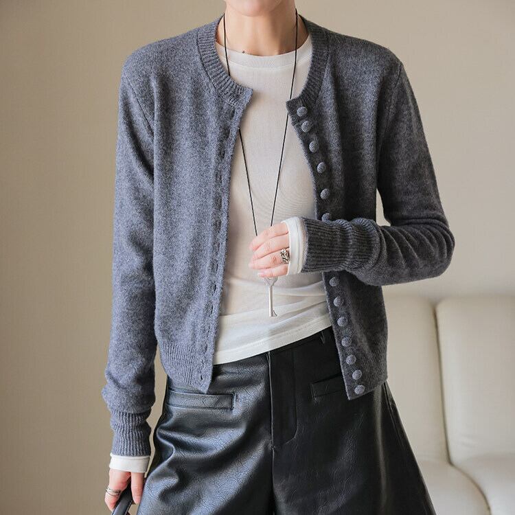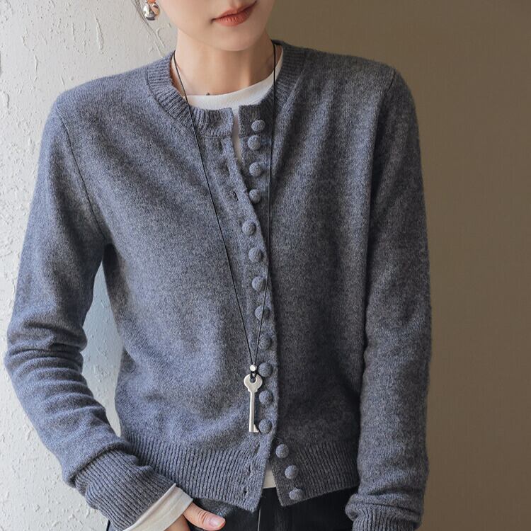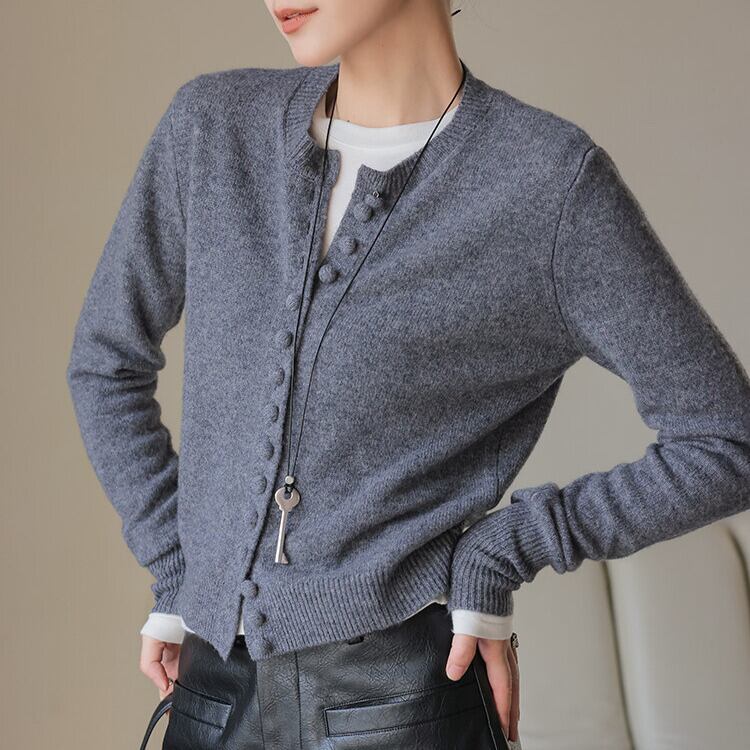 くるみボタン ボタンフロント ニットカーディガン 3col H11139
