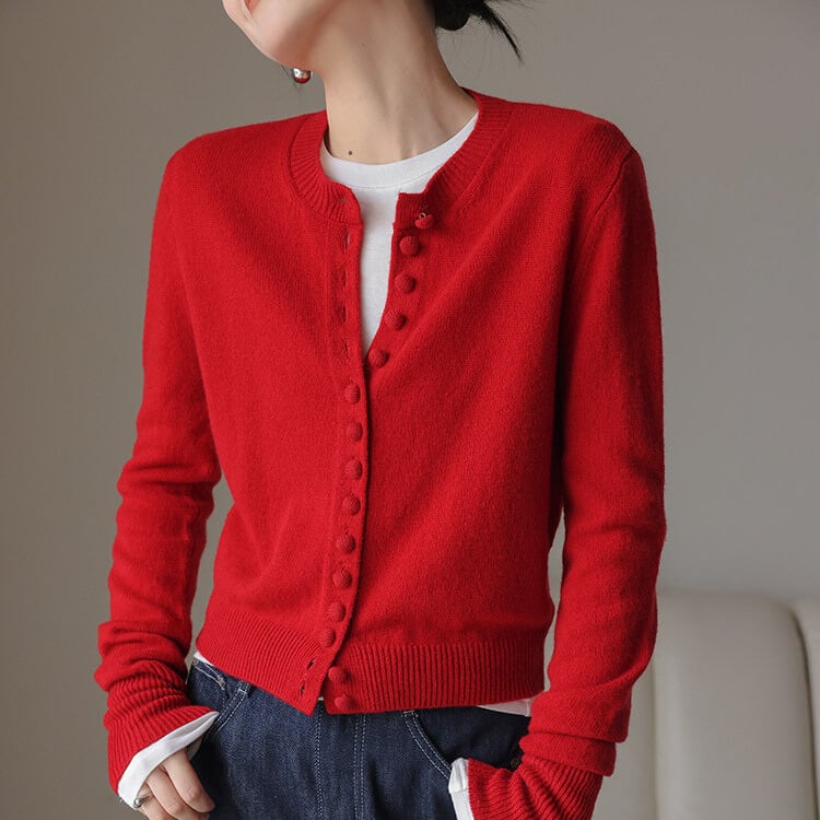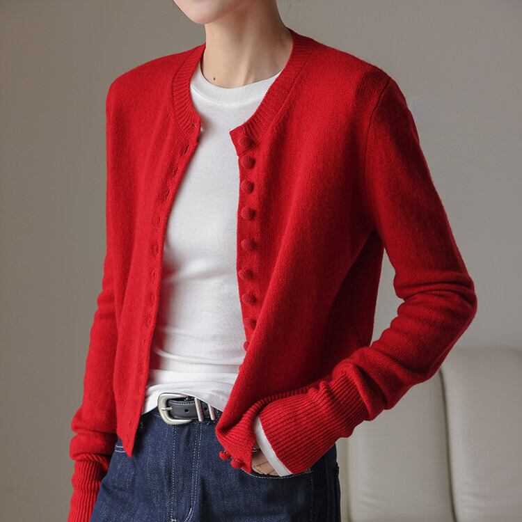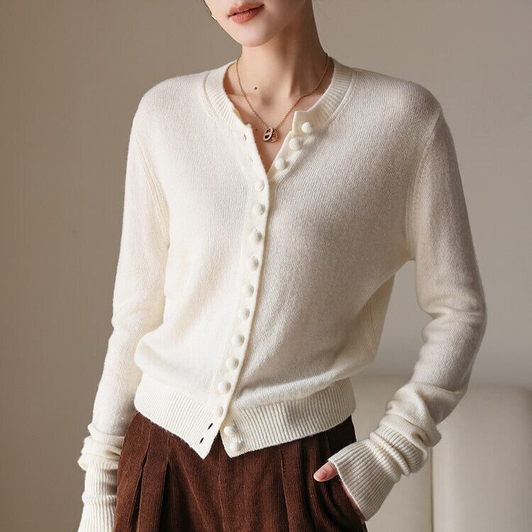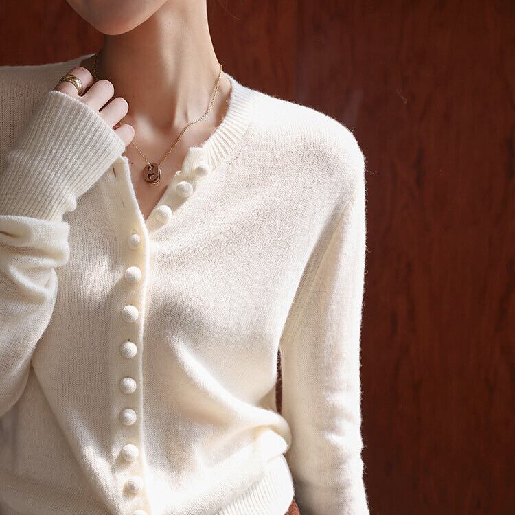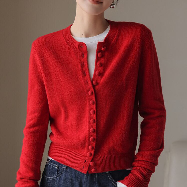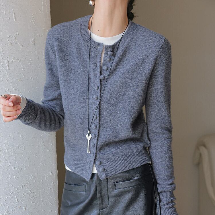 くるみボタン ボタンフロント ニットカーディガン 3col H11139