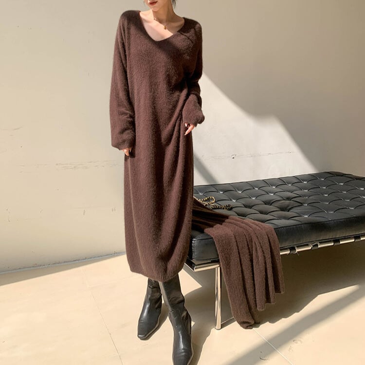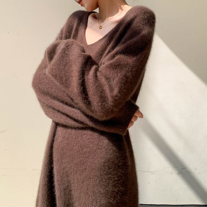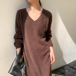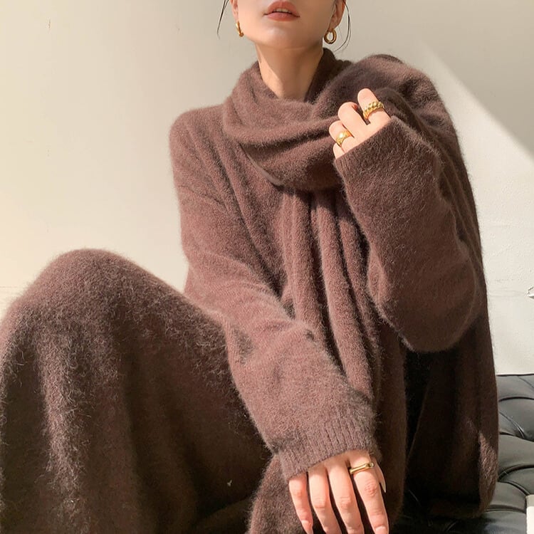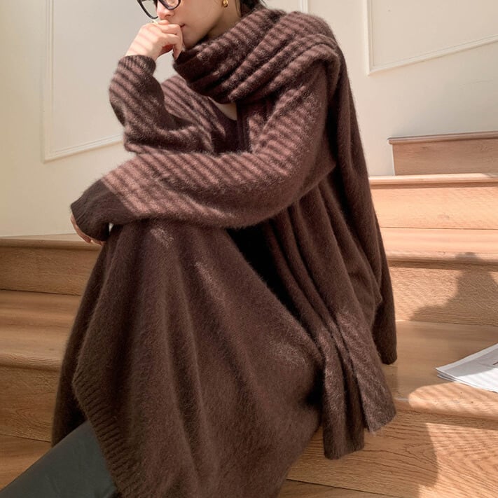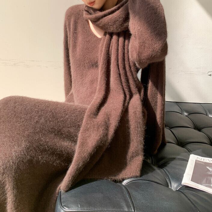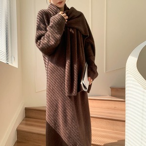 ストールがセットになった、リラックス感漂うニットワンピース。