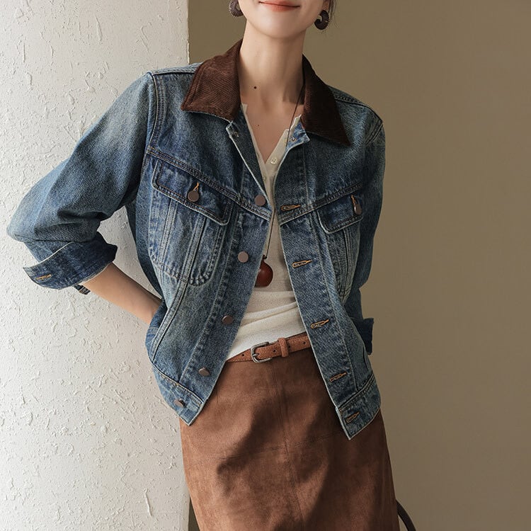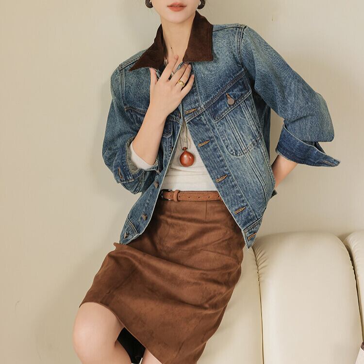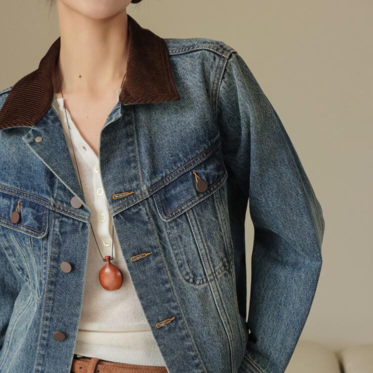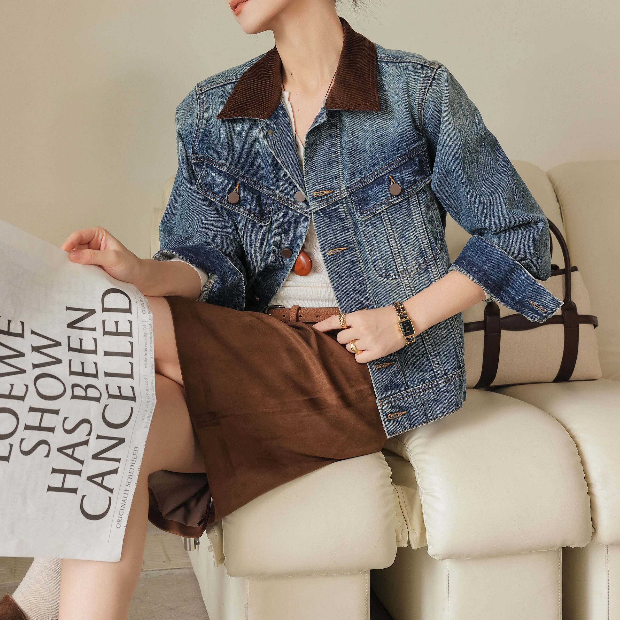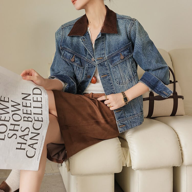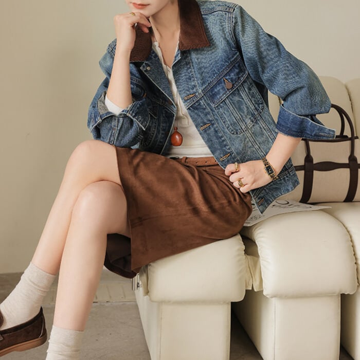 異素材の襟がコーディネートに奥行きをプラスし、こなれた雰囲気を演出します。