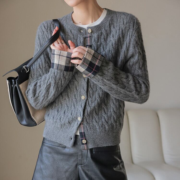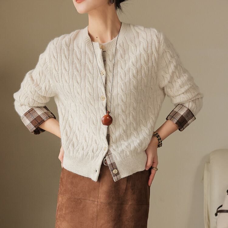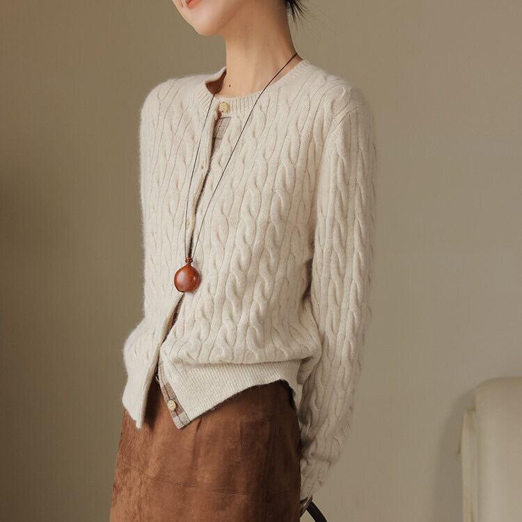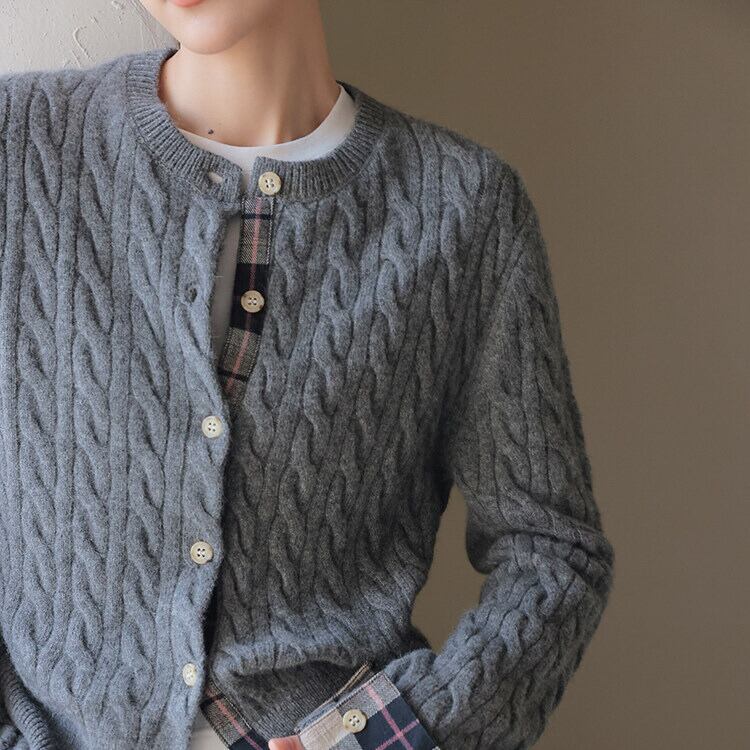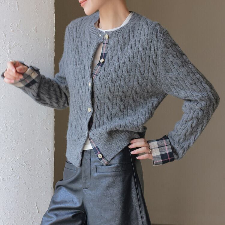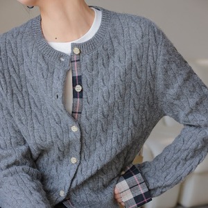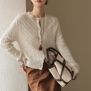 ケーブル クルーネック ニットカーディガン 2col H11140