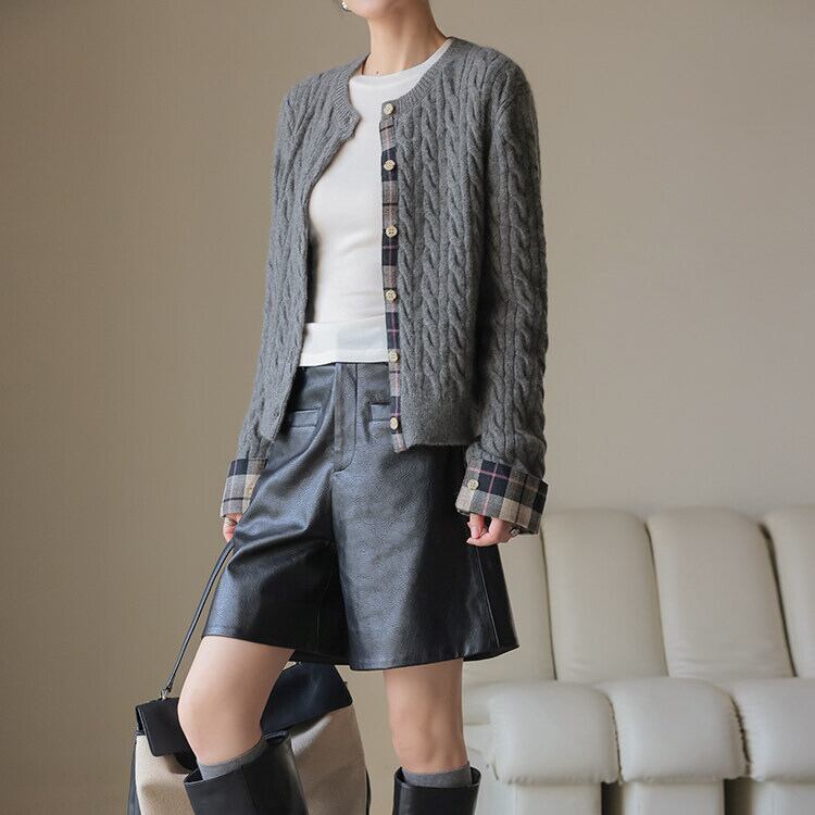 袖口と襟元のチェック柄がさりげないアクセントになり、おしゃれ度をアップします。