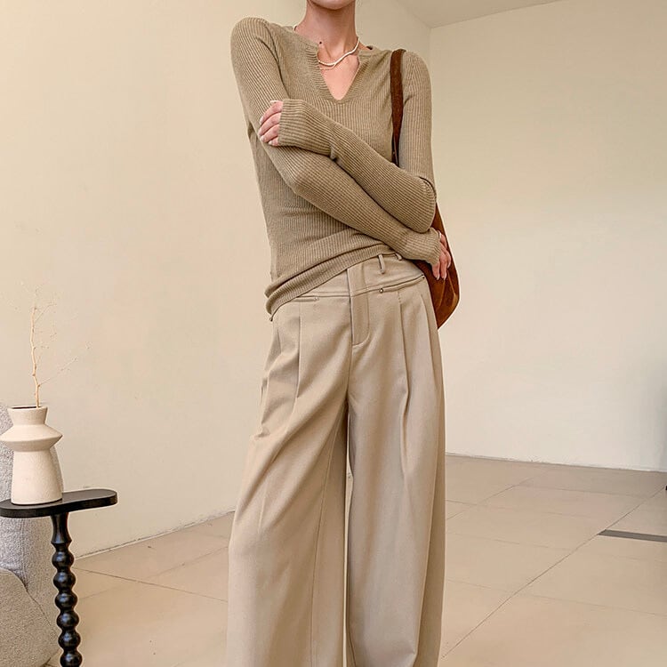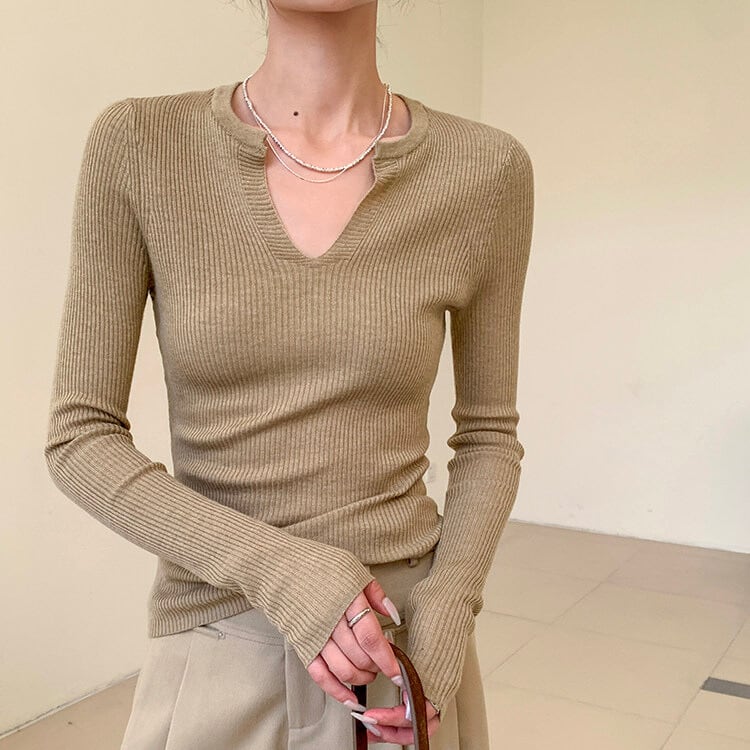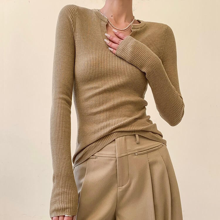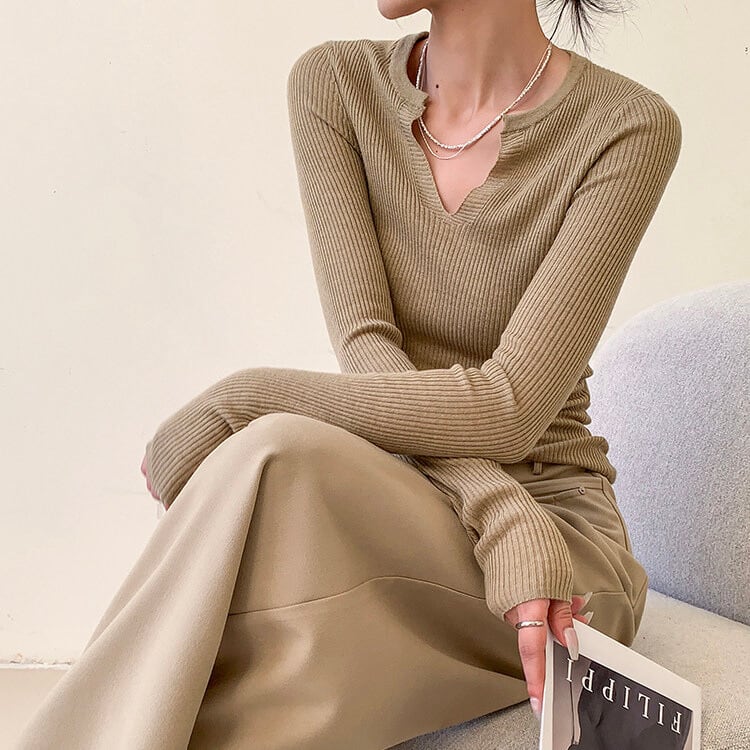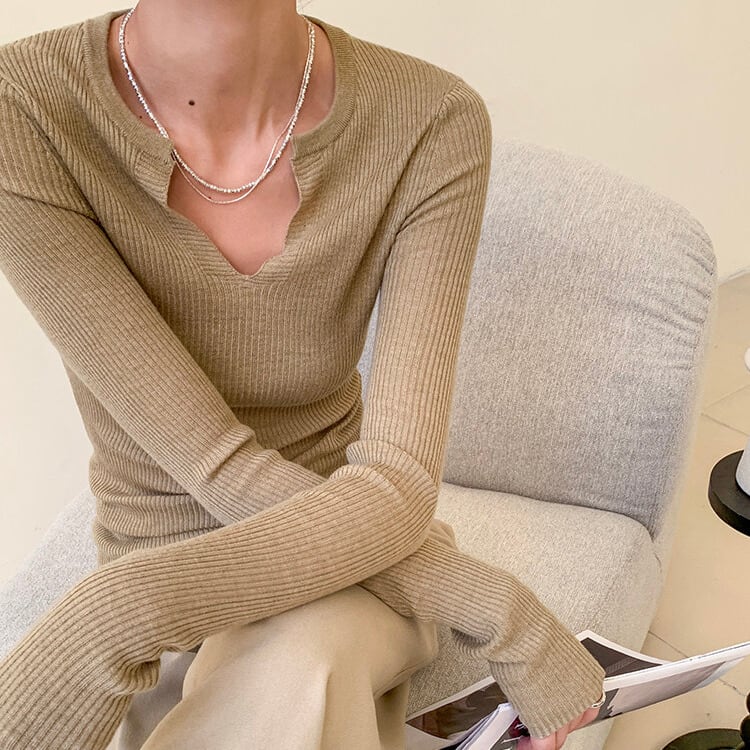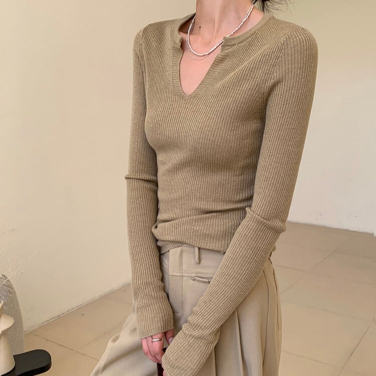 スリットネック リブ編み ニット 1col H11142
