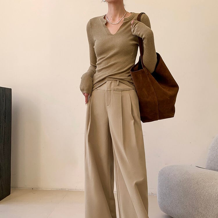 スタイリングにこなれ感をプラスするリブ編みニット。