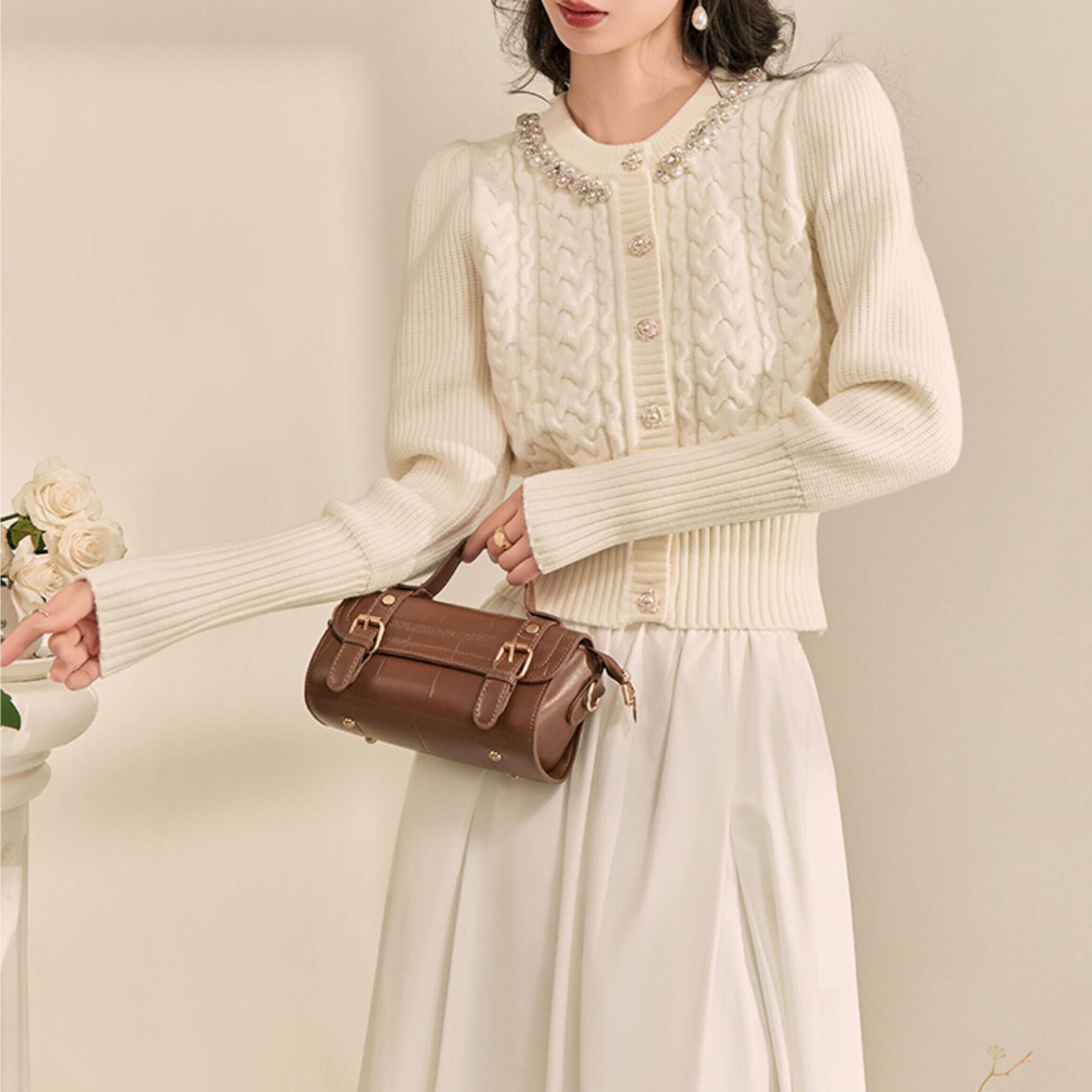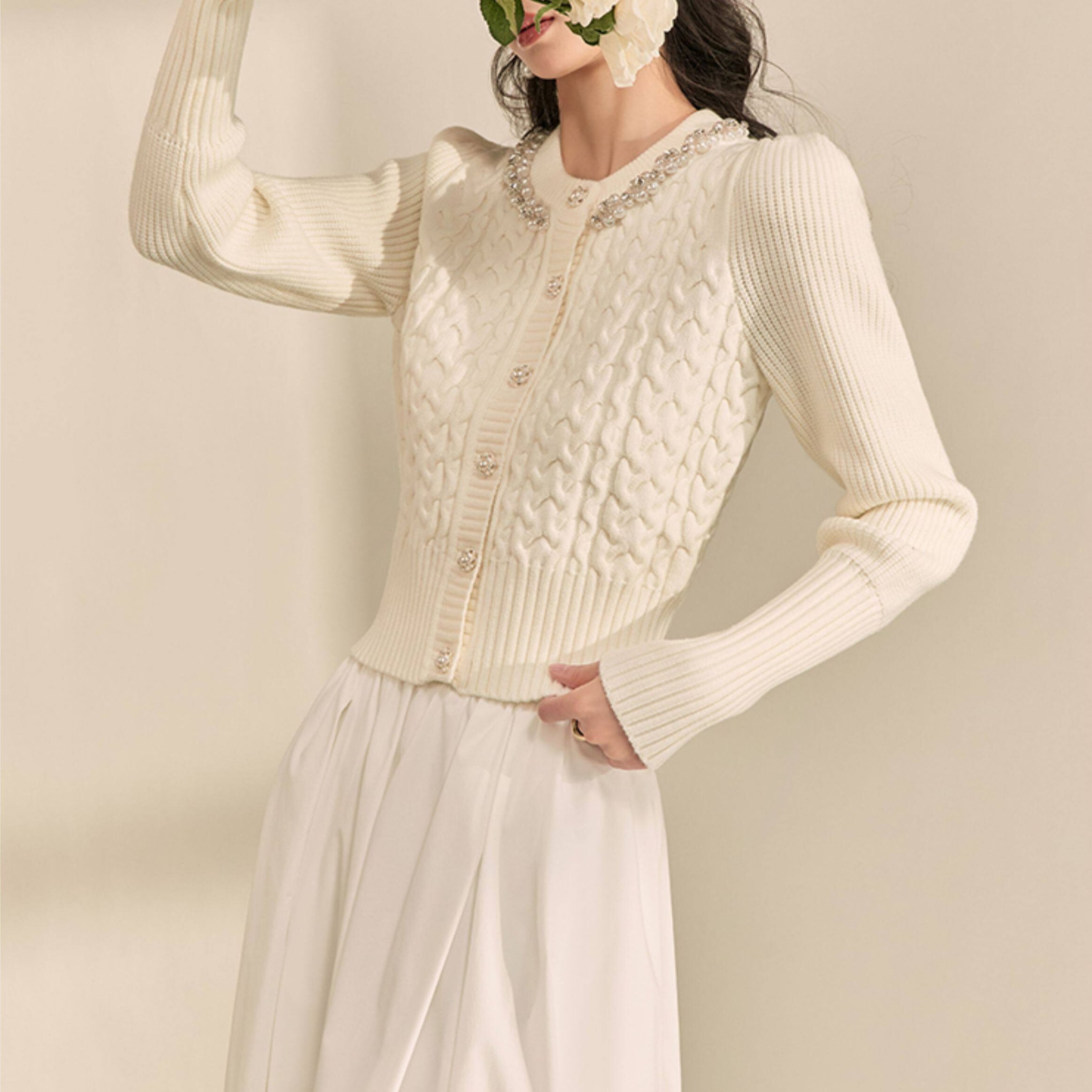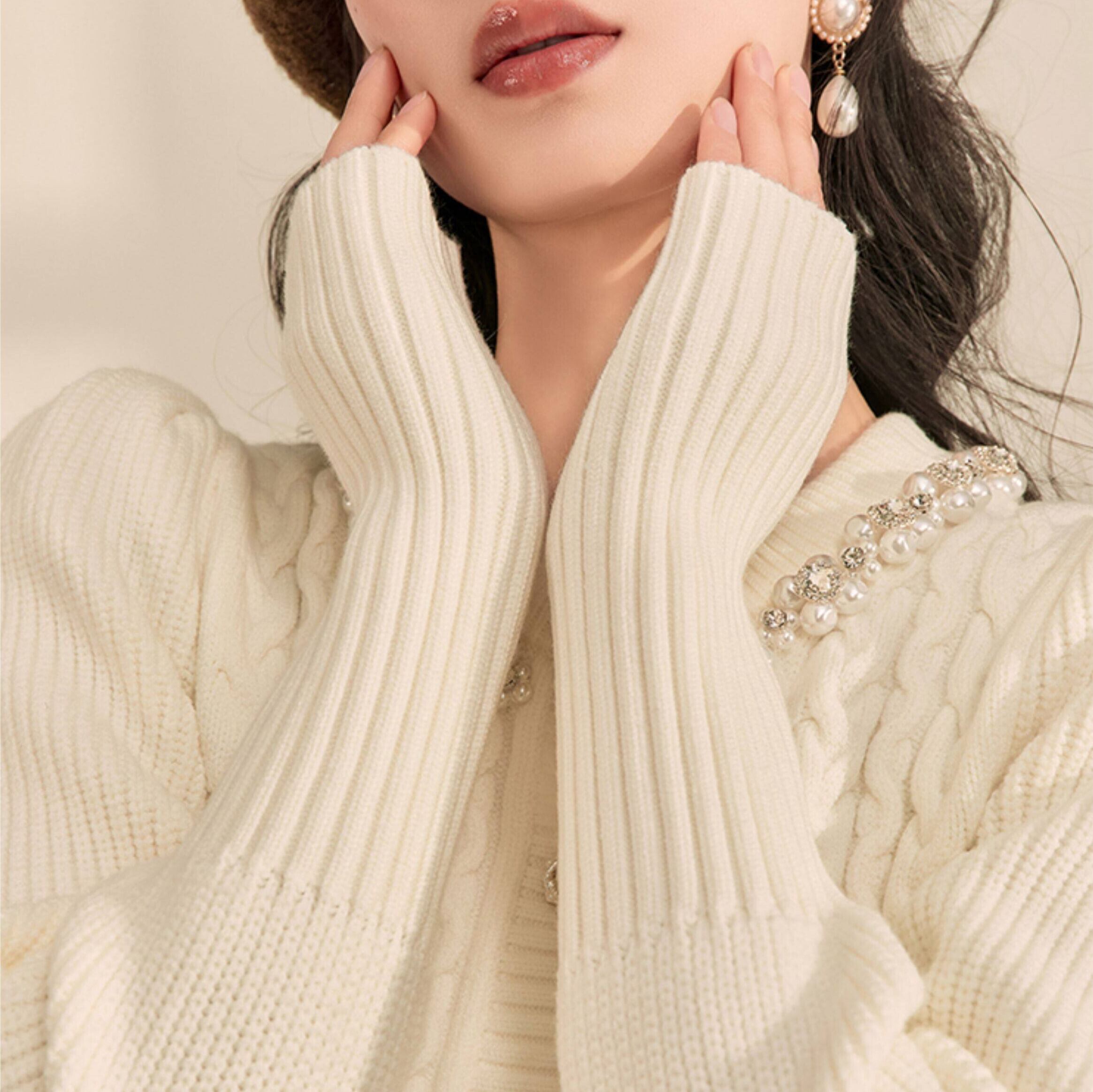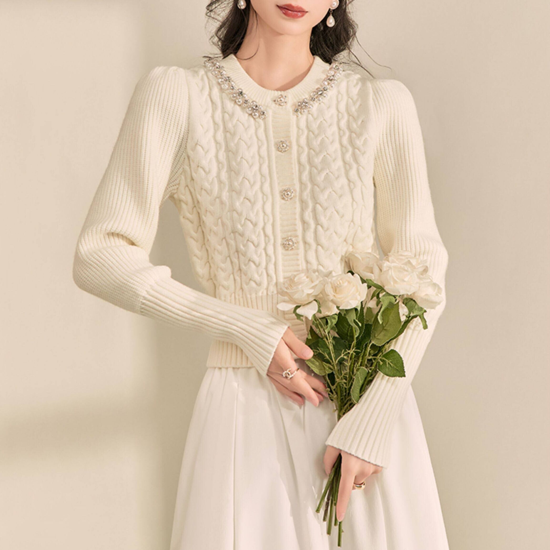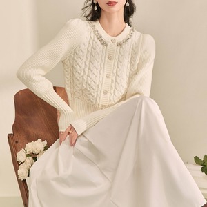 パールトリム クロップド ニットカーディガン 1col H11148