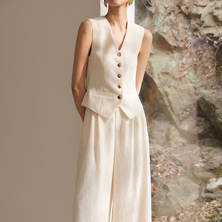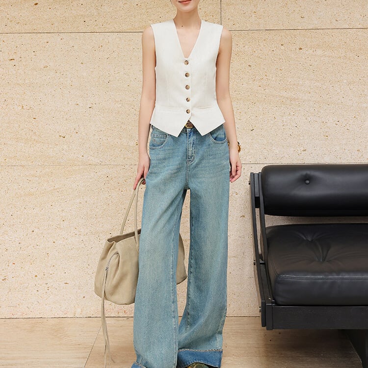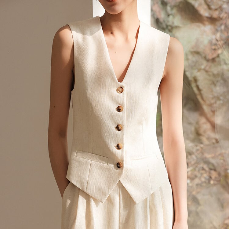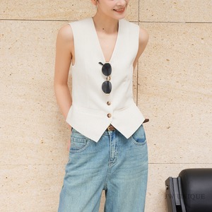 ボタンフロント ノースリーブ ベスト 1col H11165