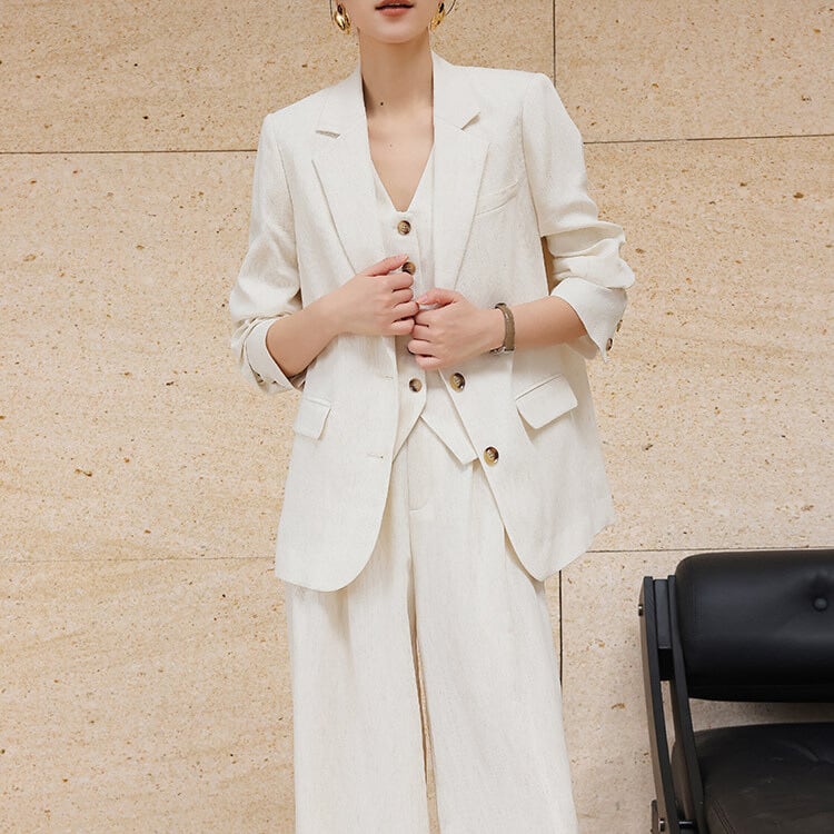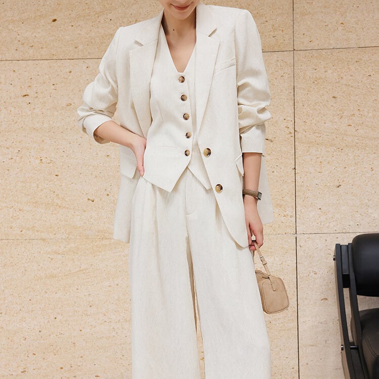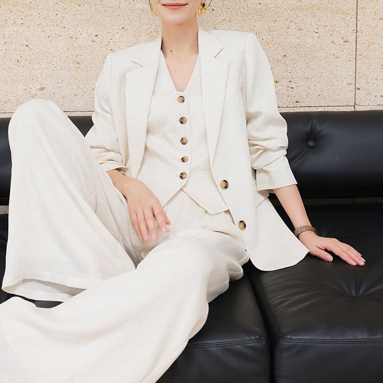 オフィスシーンはもちろん、カジュアルな着こなしにもマッチする、着回し力の高い一着です。