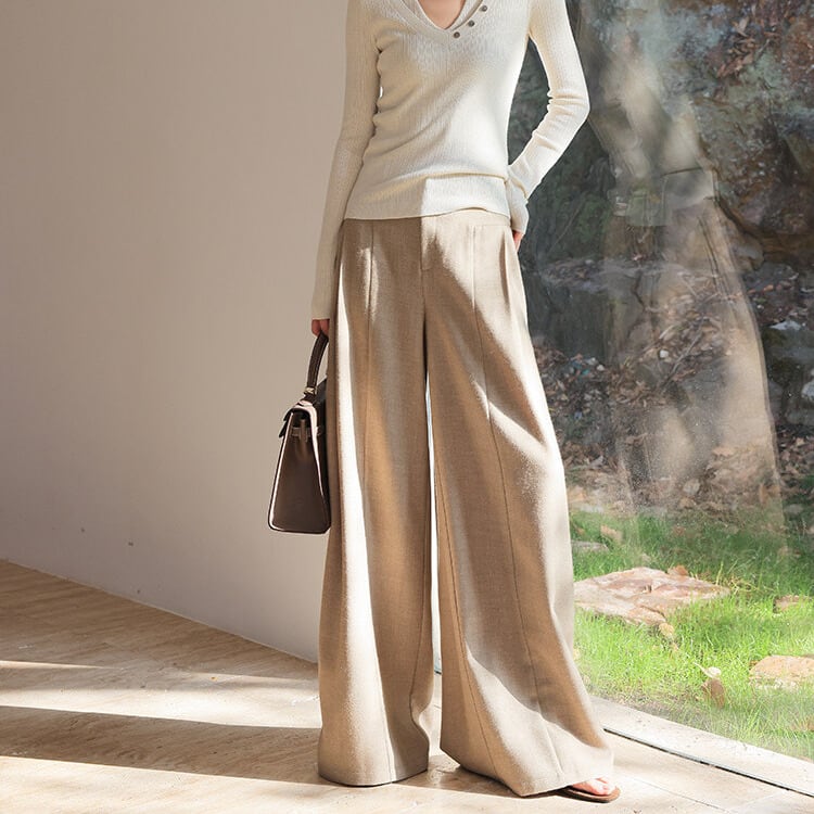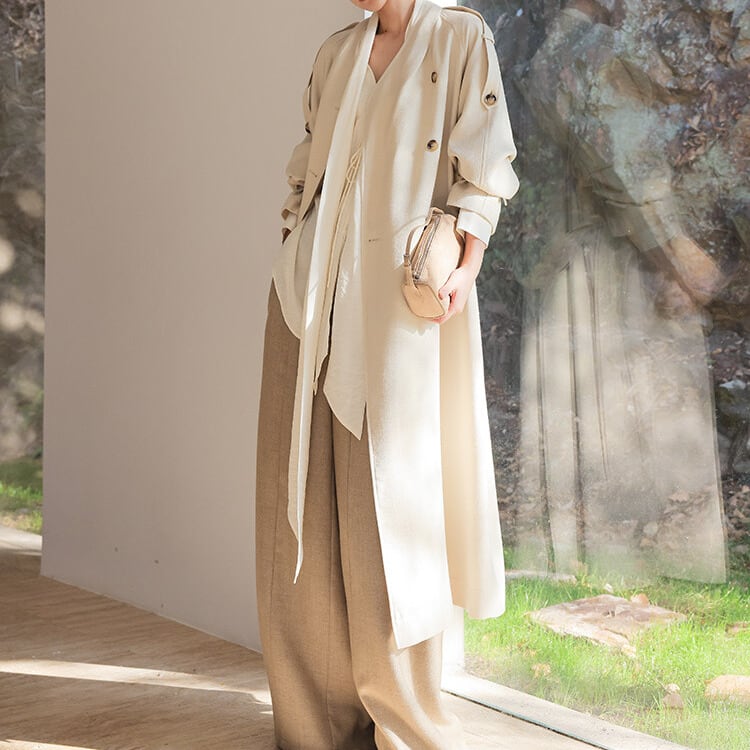 ストンと落ちるシルエットが美しいフルレングスパンツ。