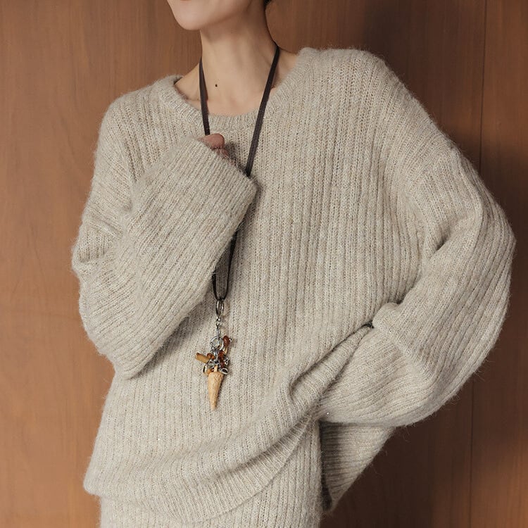 クルーネックのデザインが、首元をすっきりと見せてくれます。