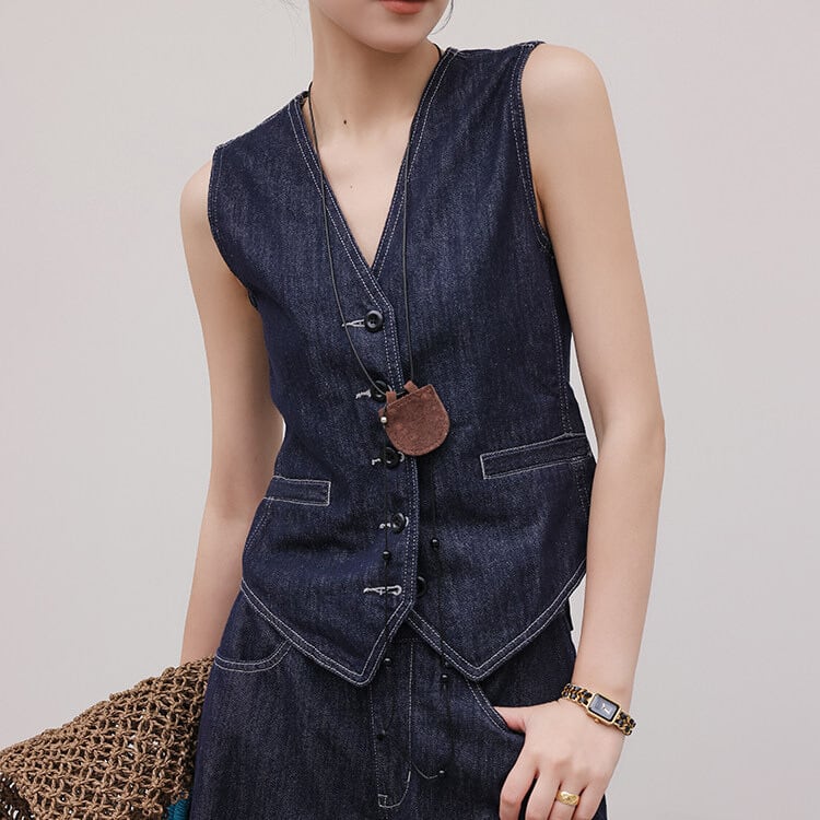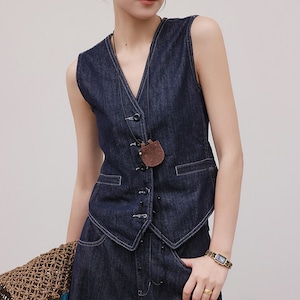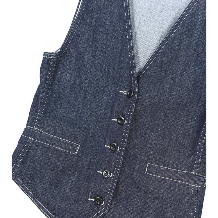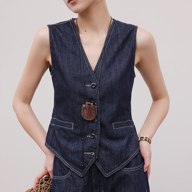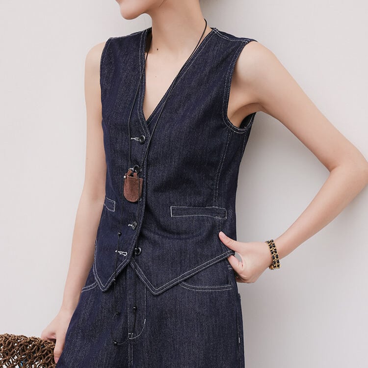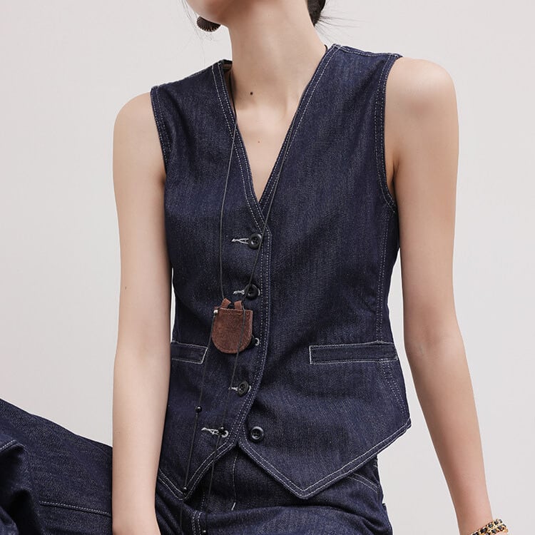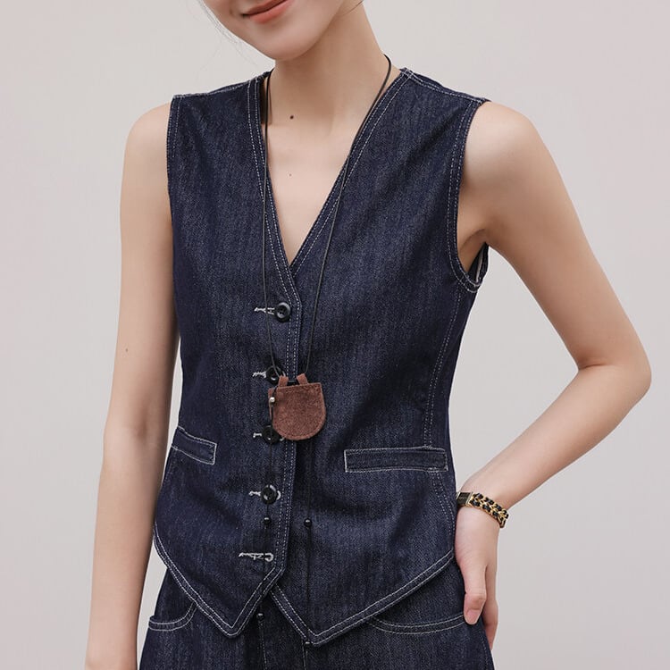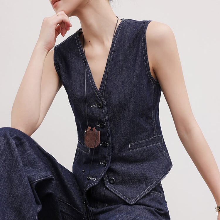 シンプルなデザインながらも、存在感を放つボタンフロントベスト。