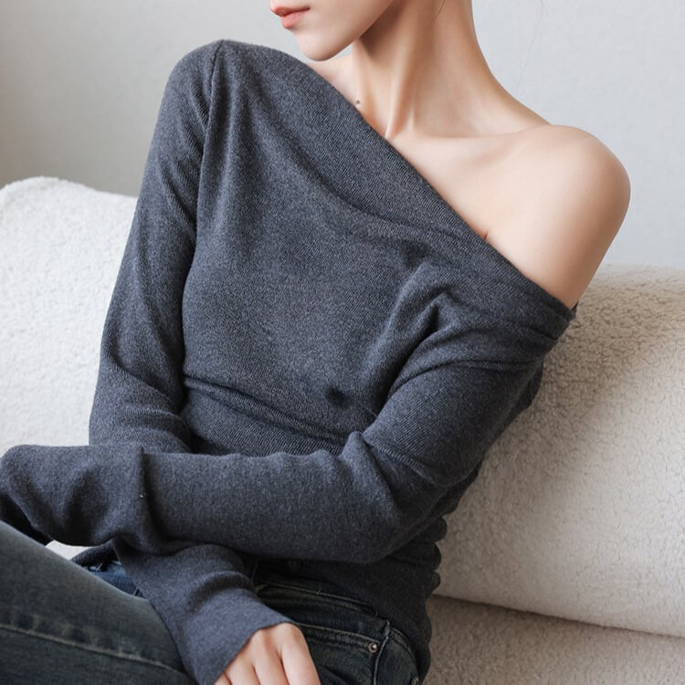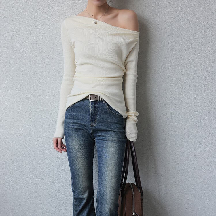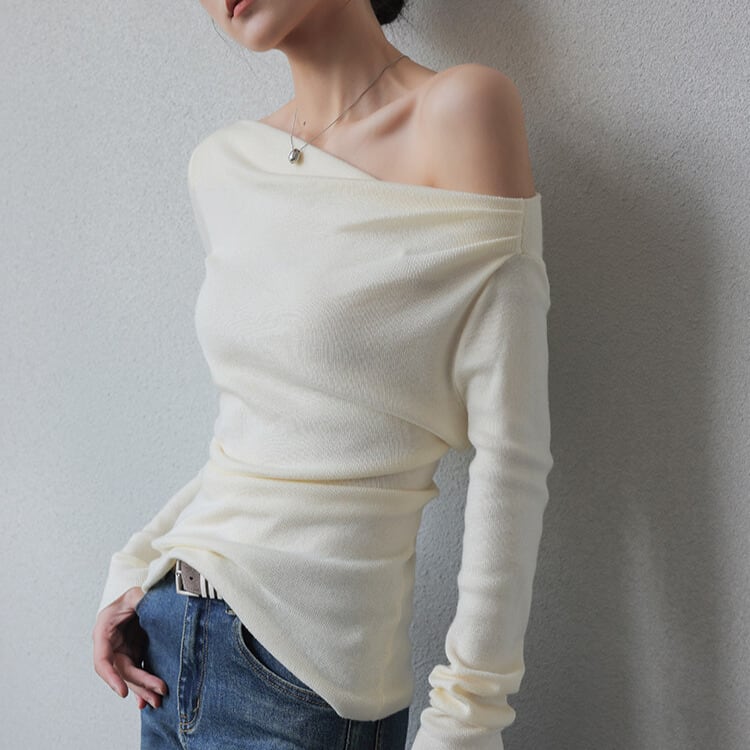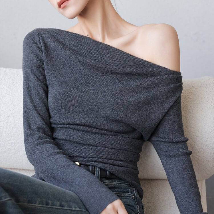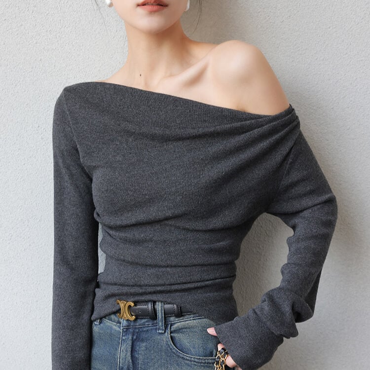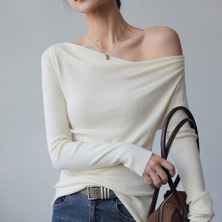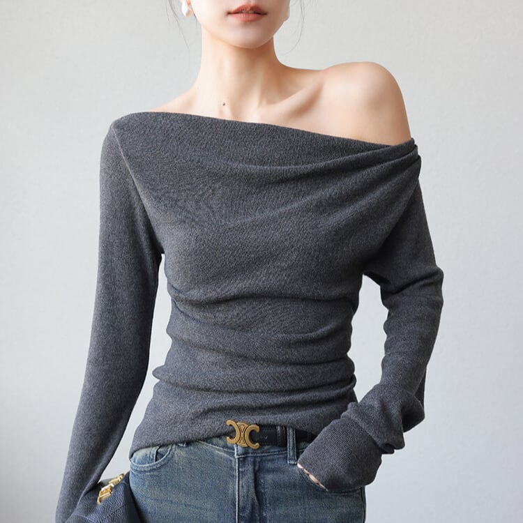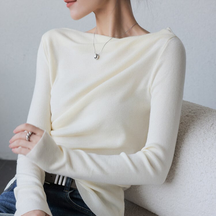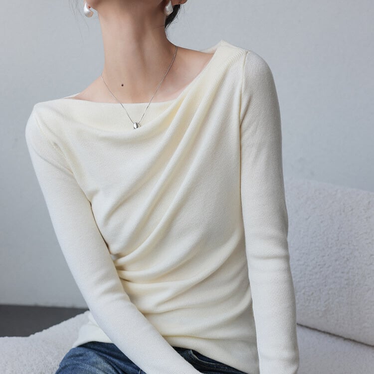 上品なドレープネックが、デコルテを美しく見せてくれるカットソー。