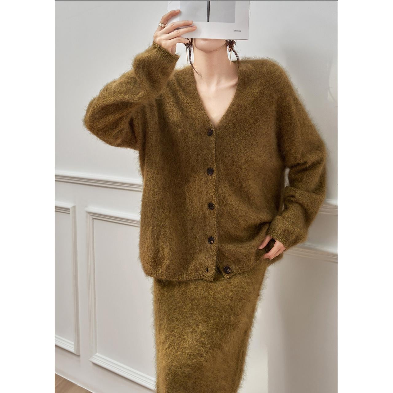 オーバーサイズ ニットカーディガン&スカートセットアップ 2col H11181