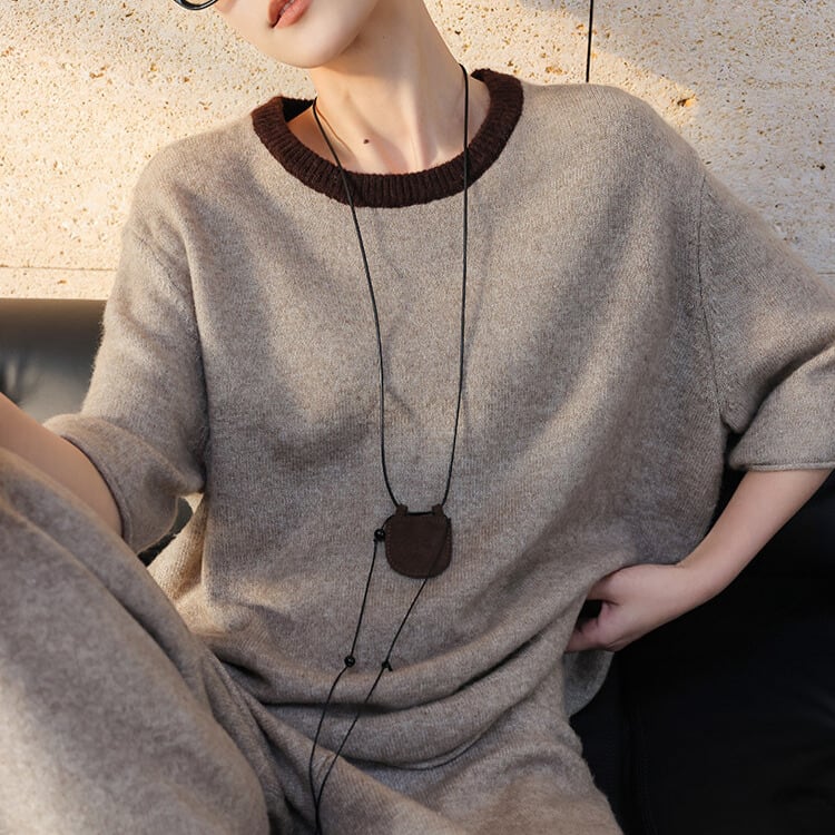 落ち着いた配色が魅力のクルーネックニット。