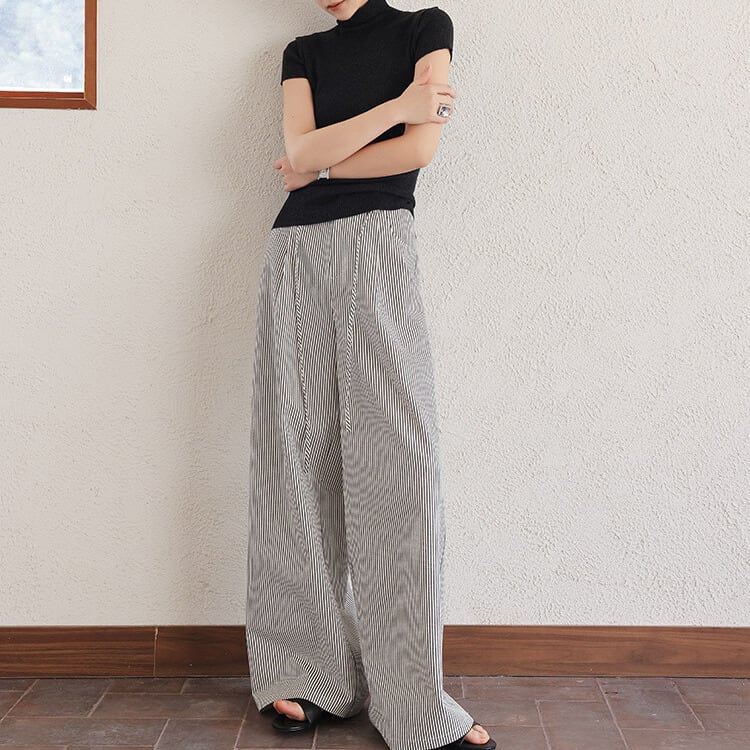リブ編みの縦ラインが、すっきりとした印象を与えます。
