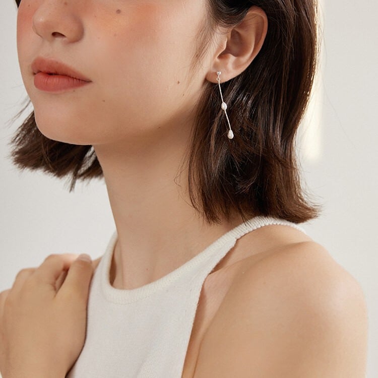 シンプルなデザインで、どんなコーディネートにも合わせやすいロングピアス。